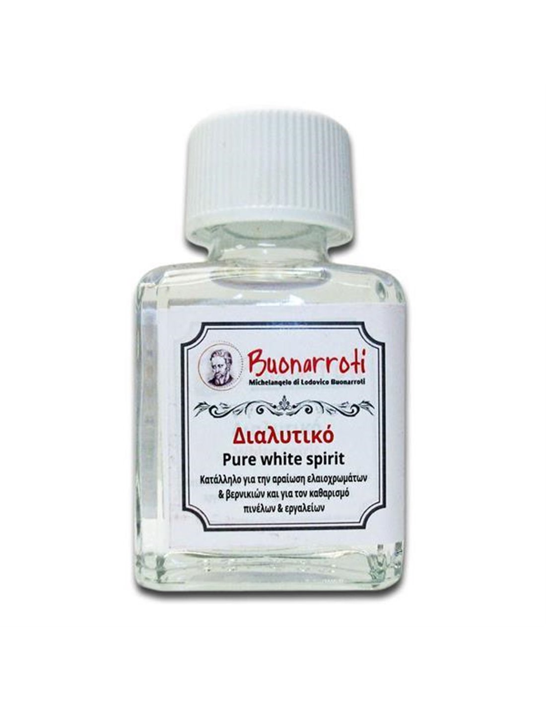 Buonarroti διαλυτικό white spirit 75ml. Κατάλληλο για την αραίωση ελαιοχρωμάτων - βερνικιών και για τον καθαρισμό πινέλων - εργαλείων.