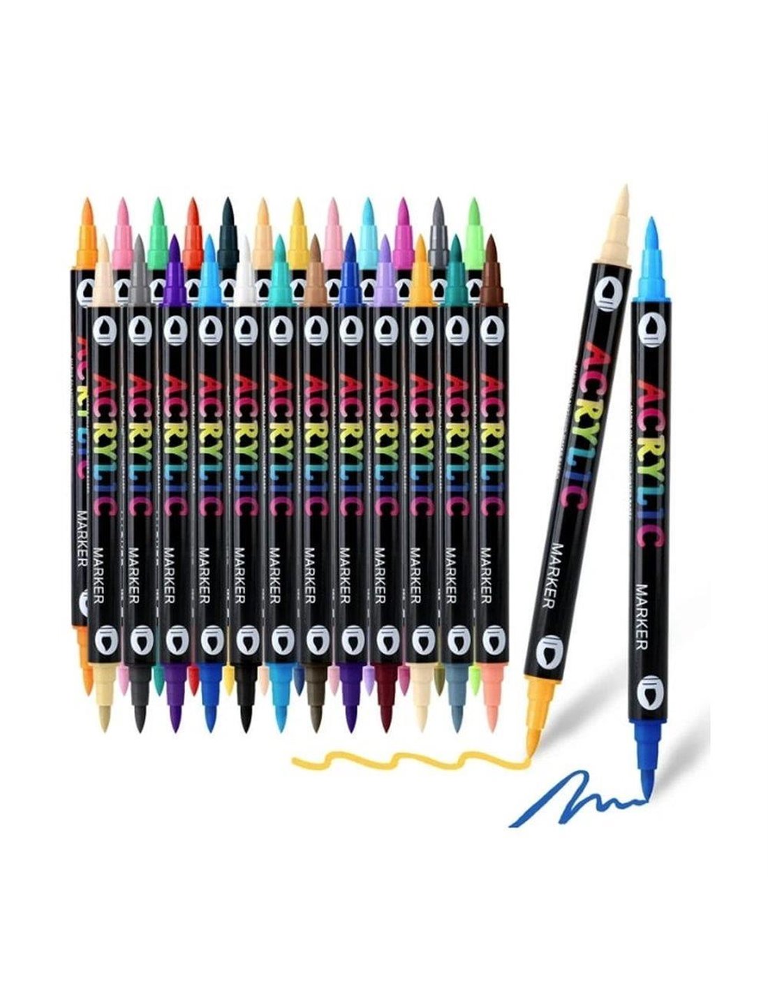 Σετ 24 ακρυλικών μαρκαδόρων διπλής όψης με δύο διαφορετικά χρώματα σε κάθε μαρκαδόρο, προσφέροντας συνολικά 48 αποχρώσεις. Διαθέτουν μαλακή brush μύτη για ευκολία στη χρήση και έντονη χρωματική απόδοση, ιδανικοί για ζωγραφική σε πέτρα, ξύλο, γυαλί, ύφασμα αλλά και DIY κατασκευές. Με βάση το νερό, γρήγορο στέγνωμα και ανθεκτικότητα στο νερό, προσφέρουν απόλυτο έλεγχο και εντυπωσιακά αποτελέσματα σε κάθε επιφάνεια.