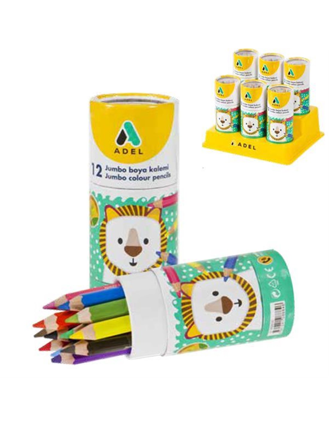 Adel ξυλομπογιές Jumbo μισού μήκους. Κύλινδρος με 12 χρώματα. Ποιοτικά προιόντα σε πολύ χαμηλή τιμή για το σχολείο - τον μαθητή.