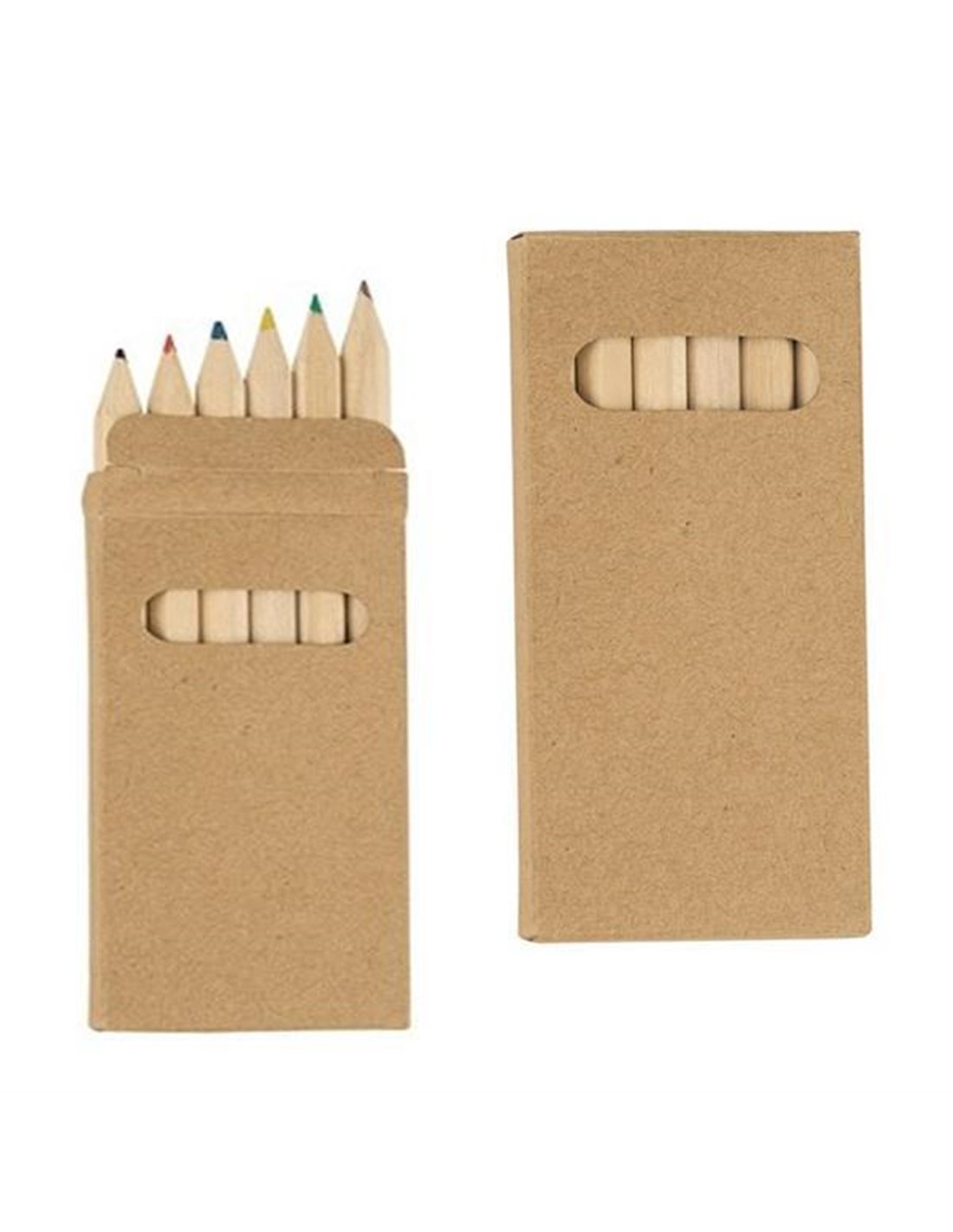 Ξυλομπογιές οικολογικές μισού μήκους 6 χρώματα Σε οικολογικό κουτί . Διαστάσεις συσκευασίας: Υ9x4.5εκ. Κουτί με 6 χρώματα.Δυνατότητα προσωποποίησης για διαφημιστικό, δείτε φωτογραφία.