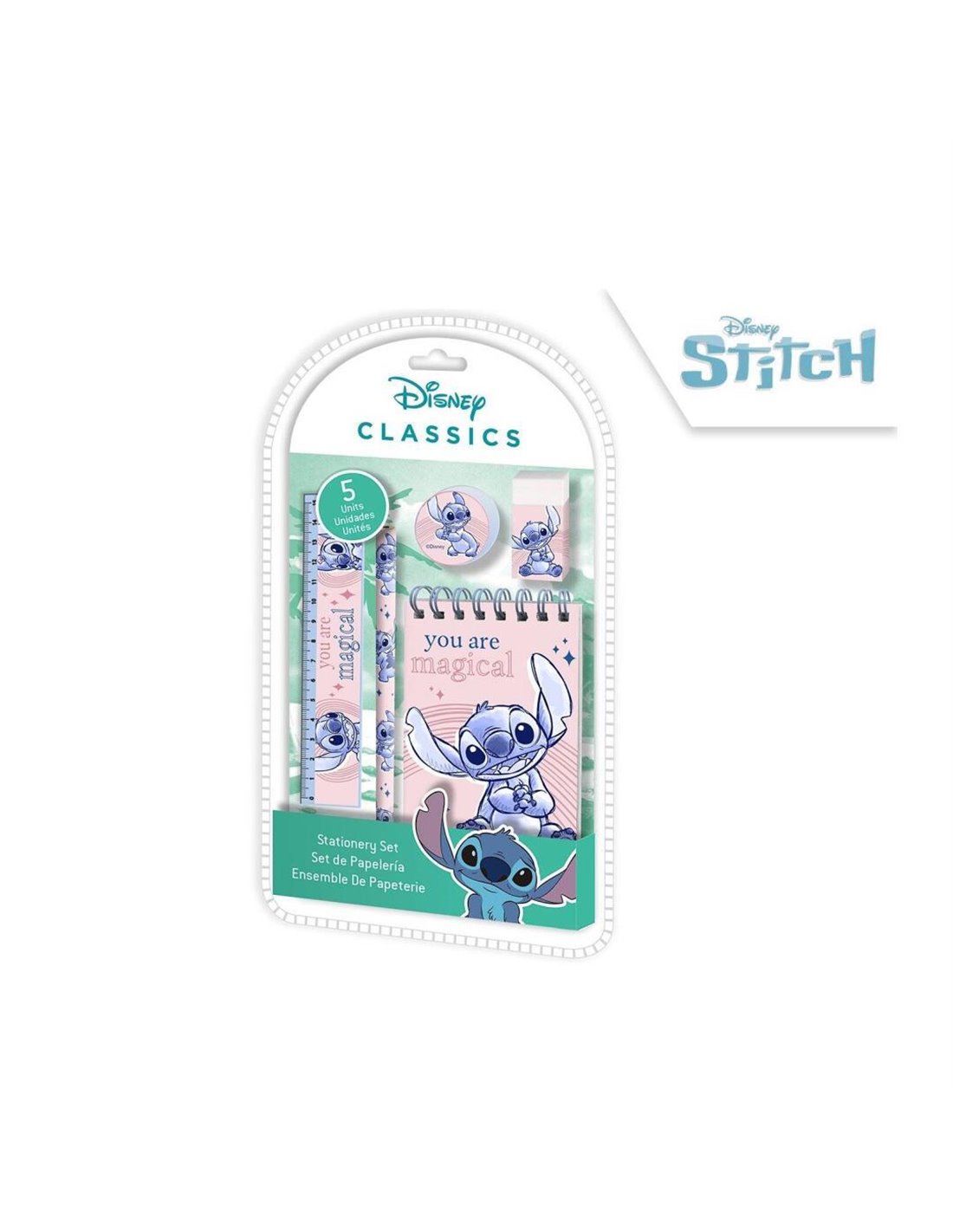 Περιλαμβάνε ισημειωματάριο, γόμα, ξύστρα, χάρακα και μολύβι.