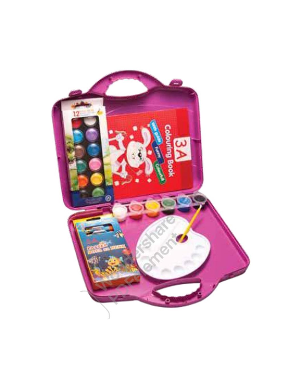 Πλήρες σετ ζωγραφικής σε πρακτικό βαλιτσάκι με 39 τεμάχια. Περιλαμβάνει μπλοκ ζωγραφικής, νερομπογιές, κηρομπογιές, ξυλομπογιές, μαρκαδόρους και άλλα απαραίτητα για κάθε μικρό καλλιτέχνη. Ιδανικό για δώρο, για το σχολείο ή για δημιουργική απασχόληση στο σπίτι. Κατάλληλο για παιδιά από 3 ετών και άνω. Διαστάσεις: Υ4,7x33x29.2εκ.