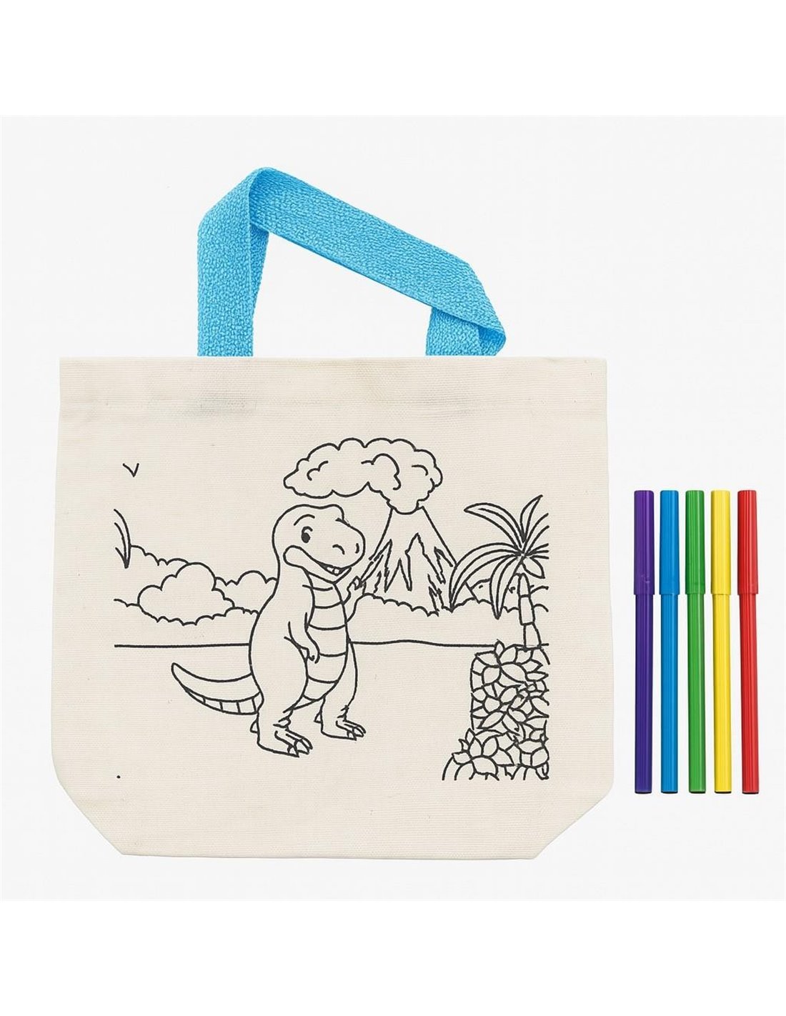 Τσάντα non wooven λευκή για ζωγραφική δεινόσαυρος με 6 μαρκαδόρους Υ21x21,5x0.3εκ.