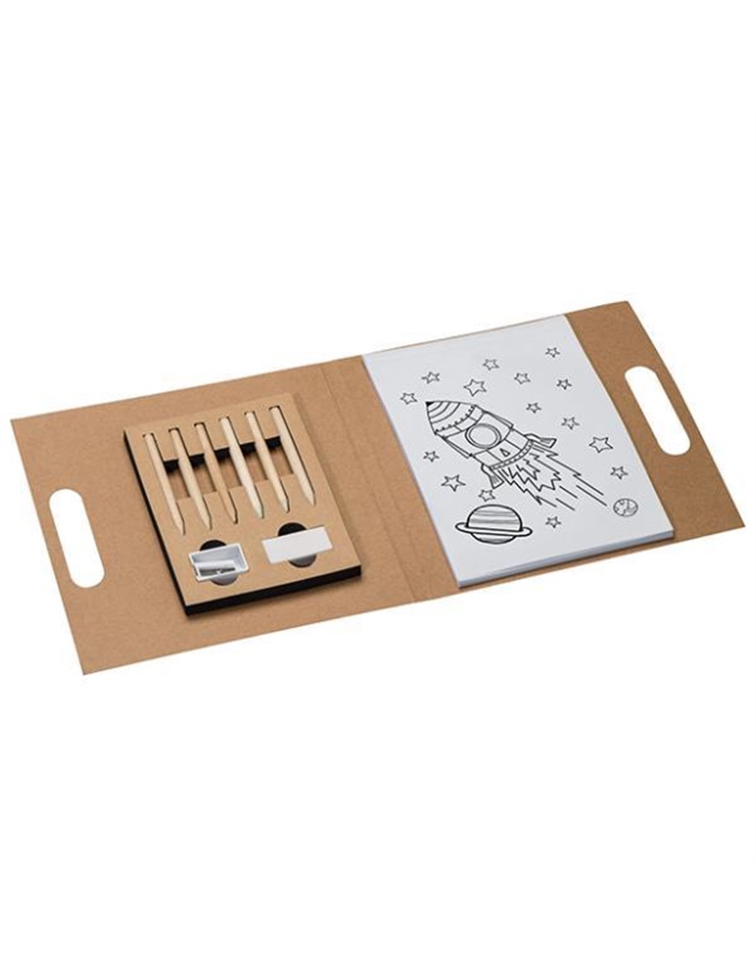 Βιβλίο ζωγραφικής 20,5x21εκ, με 6 χρωματιστές ξυλομπογιές, ξύστρα και σβήστρα