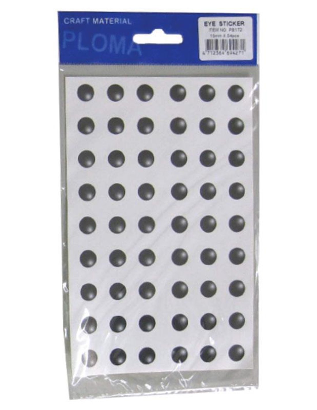 Μάτια αυτοκόλλητα 15χιλ. σε καρτέλα 54 τεμάχια