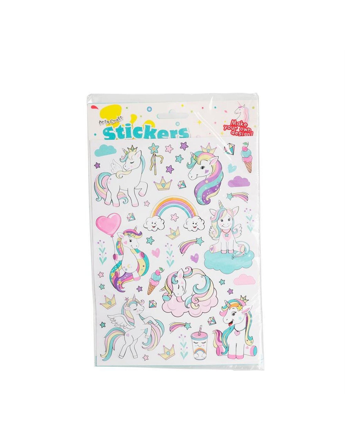 Αυτοκόλλητα 'Unicorn' , 2 σελίδες με 98 σχέδια. Πολύχρωμα με έντονα σχέδια και σχήματα τα αυτοκόλλητα πάντα αποτελούν μια καλή επιλογή διασκέδασης και δημιουργικότητας για τα παιδιά. Βοηθούν στην ανάπτυξη της λεπτής κινητικότητας καθώς απαιτούνται προσεκτικές κινήσεις ώστε να ξεκολλήσουν σωστά χωρίς να σκιστούν. Διαστάσεις ∶∶17x23εκ