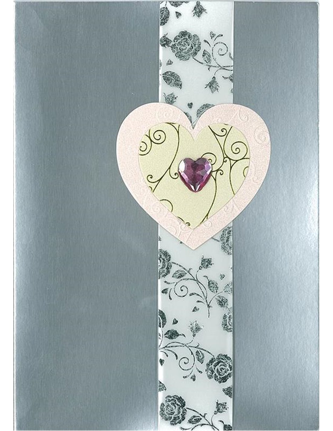 Κάρτα-προσκλητήριο με φάκελο "Καρδιά ροζ-ασημί" 13x18εκ.