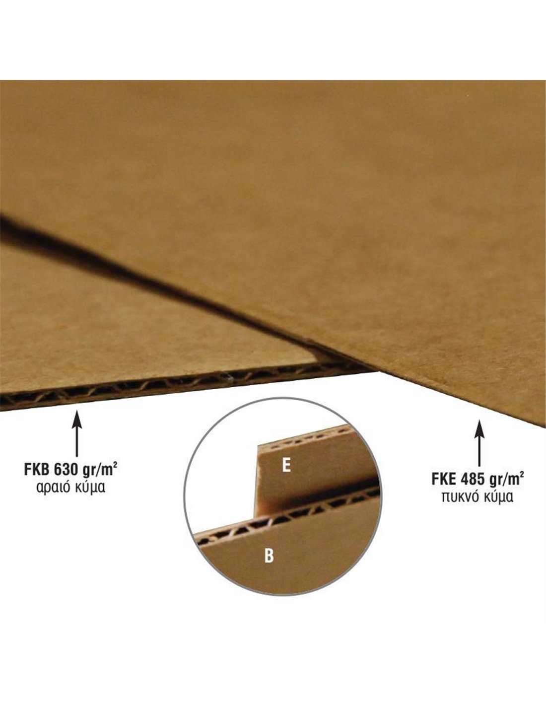 Μικροβέλε χαρτόνι το οποίο αποτελείται απο 3 φύλλα χαρτιού κραφτ(πρωτογενές, πολύ γερό).