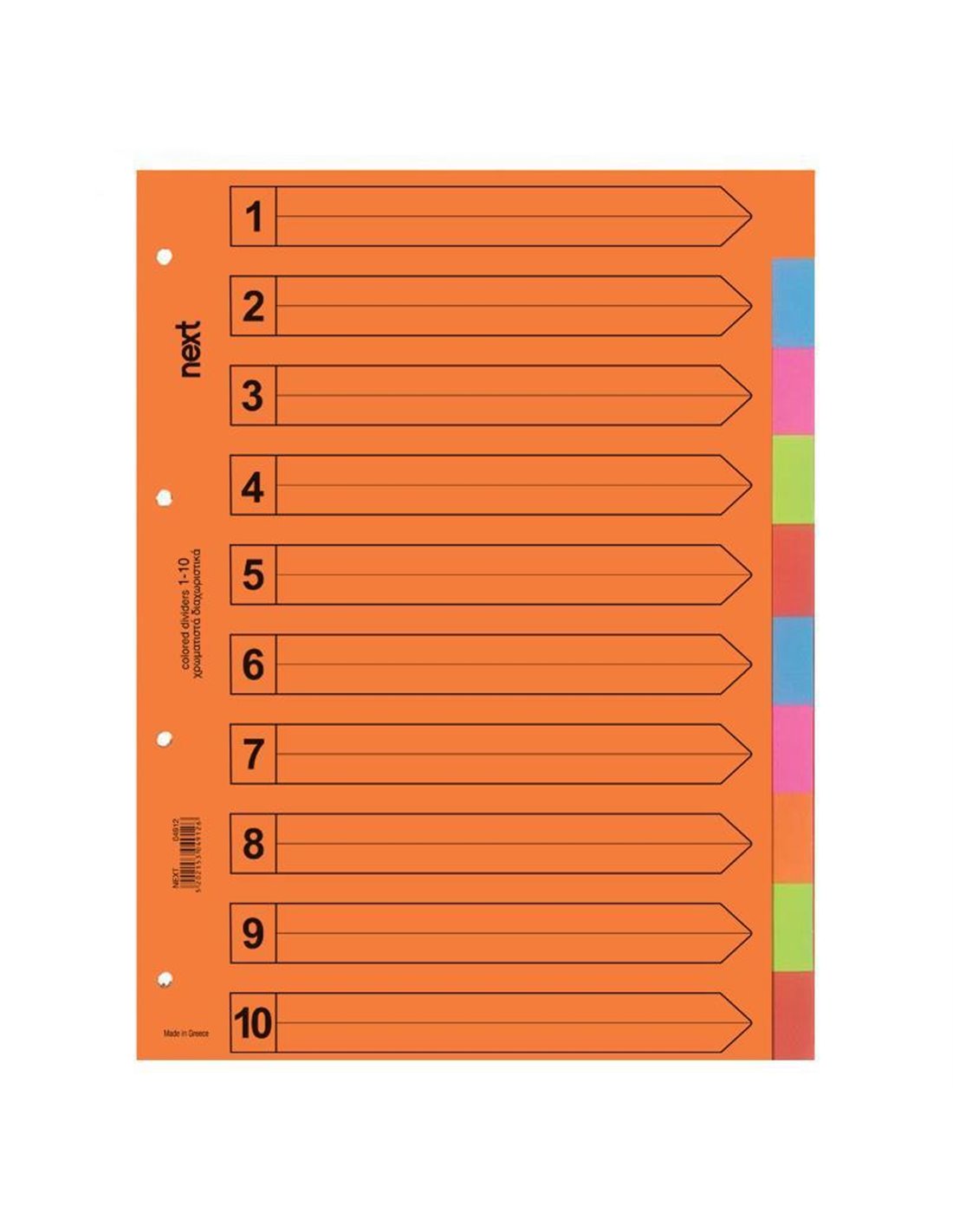 Τα χάρτινα διαχωριστικά ντοσιέ Next 1-10 θεμάτων σε μέγεθος Α4 προσφέρουν ευκολία και αποτελεσματικότητα στην οργάνωση των εγγράφων σας. Κατασκευασμένα από ανθεκτικό χαρτί, αυτά τα διαχωριστικά είναι αριθμημένα από 1 έως 10, επιτρέποντάς σας να κατηγοριοποιείτε τα έγγραφα ανά θέμα για γρήγορη και εύκολη αναζήτηση. Ιδανικά για χρήση σε επαγγελματικό και προσωπικό περιβάλλον, τα διαχωριστικά αυτά προσαρμόζονται εύκολα σε ντοσιέ Α4 και προσφέρουν αξιόπιστη οργάνωση εγγράφων.