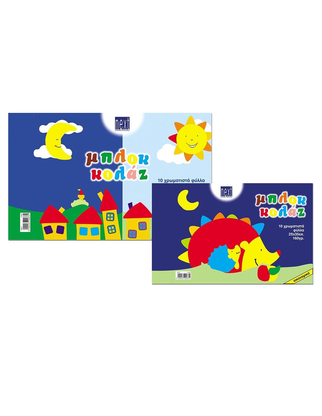Next μπλοκ κολάζ. 10 φύλλων. Σε διαφορετικά χρώματα. Από χαρτί 160 γρ. Διαστάσεις: 25x35εκ.