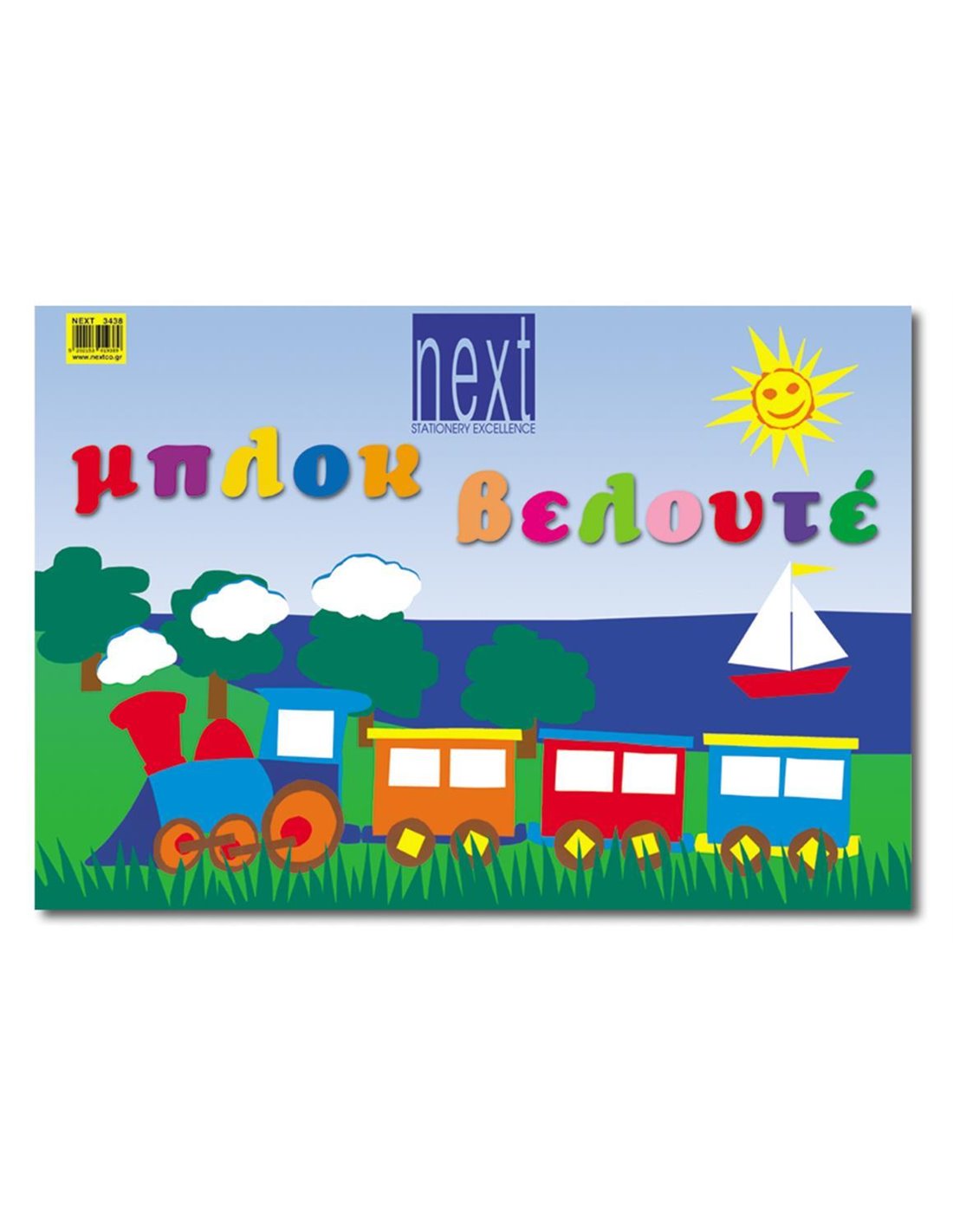 Next μπλοκ βελουτέ. 10 φύλλων. Σε διαφορετικά χρώματα. Διαστάσεις: 25x35εκ.