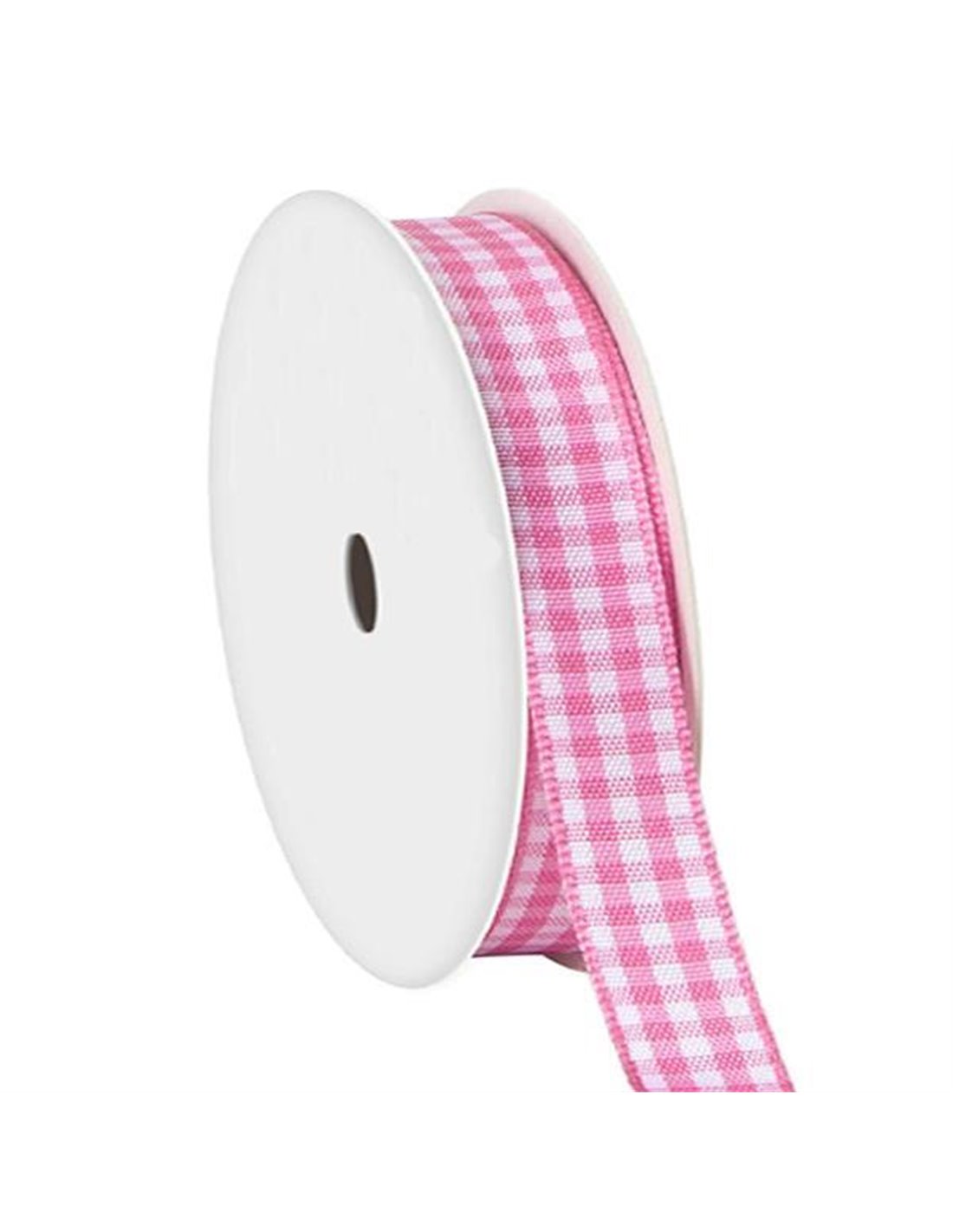 Κορδέλα καρώ με ούγια ροζ 25mm ρολό 45μ.