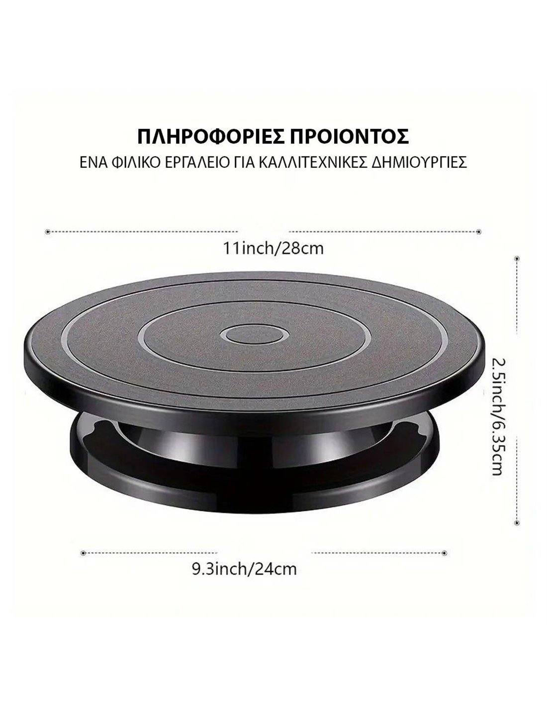 Η περιστρεφόμενη βάση πηλού πλαστική είναι ιδανική για ερασιτέχνες και επαγγελματίες της κεραμικής και της γλυπτικής. Κατασκευασμένη από ανθεκτικό πλαστικό, η περιστρεφόμενη βάση πηλού προσφέρει ομαλή περιστροφή και εύκολη μεταφορά. Με ελαφριά κατασκευή και πρακτικό μέγεθος, η περιστρεφόμενη βάση πηλού είναι κατάλληλη για κάθε πάγκο εργασίας και προσφέρει σταθερότητα κατά την πηλοπλαστική. Ιδανική για σχολές, εργαστήρια και χόμπι. Διαστάσεις 28xΥ6,5εκ.