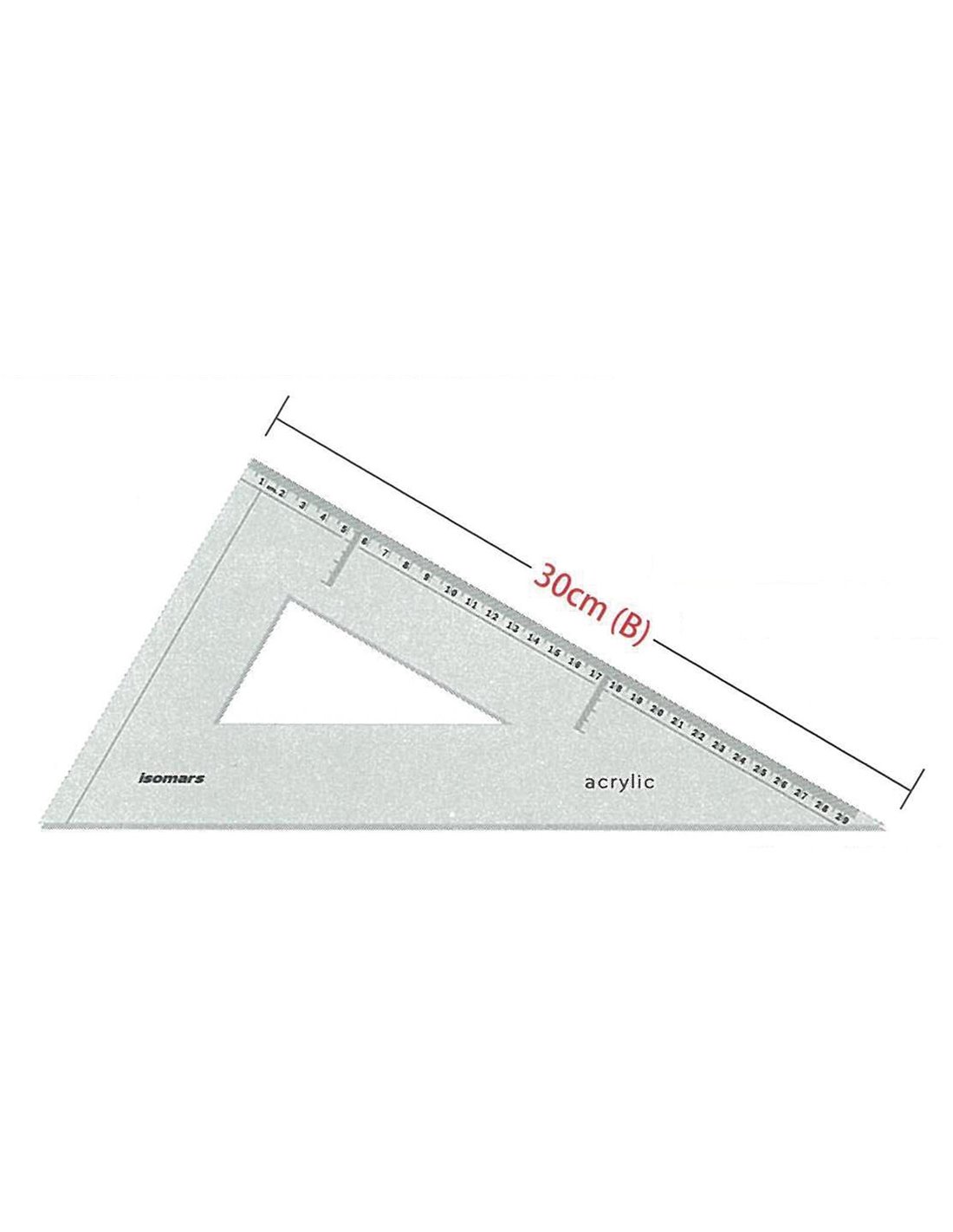 Isomars τρίγωνο ακρυλικό 45μοιρών 30εκ. Με αρίθμηση και πατούρα.