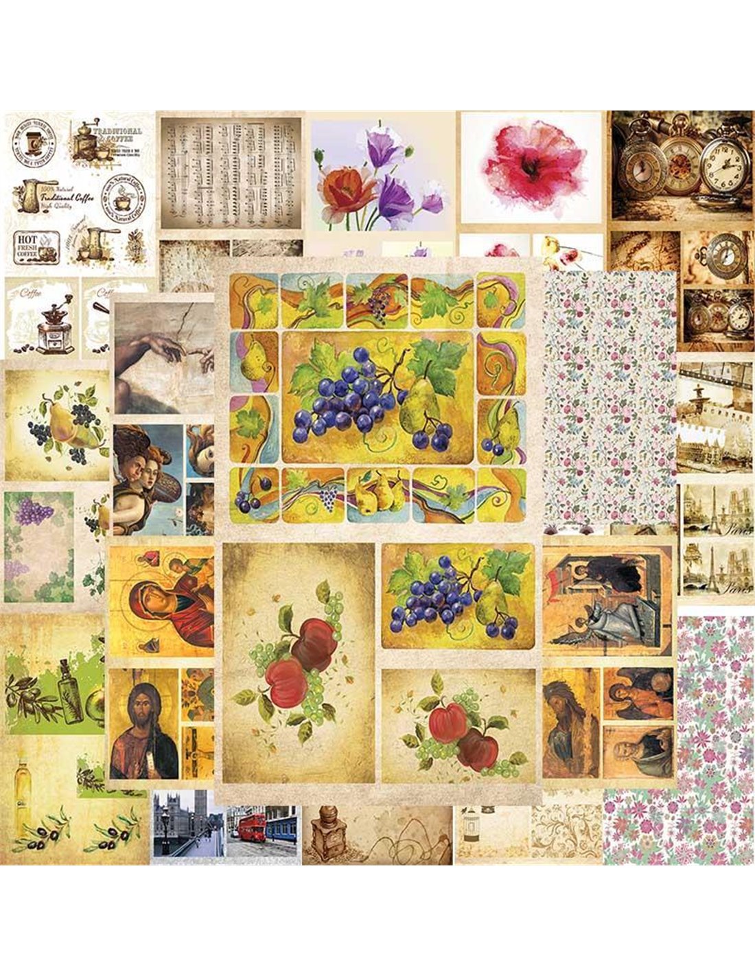 Χαρτί ντεκουπάζ 60γρ Κοκτέηλ 20 διαφορετικών σχεδίων. Διαστάσεις: 32x48εκ.
