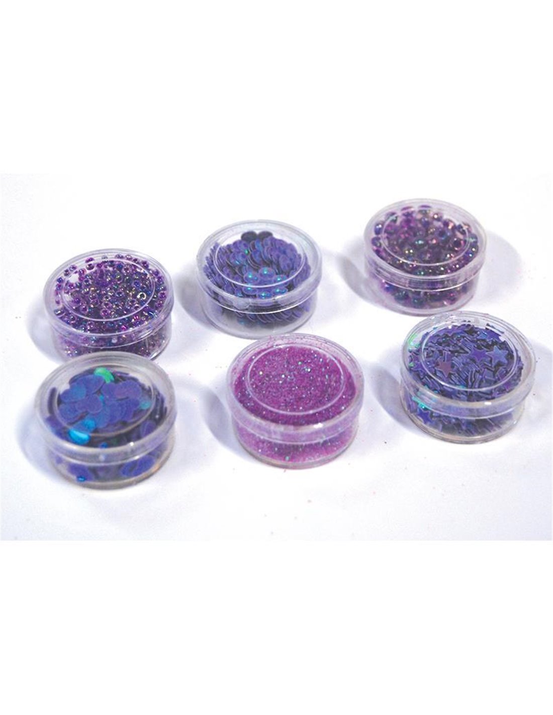 Κάθε σετ περιλαμβάνει χάντρες με τρύπα, glitter σε σκόνη, πούλιες σε σχήμα αστεράκι και σχήμα καρδιάς. Χρώμα: μωβ.