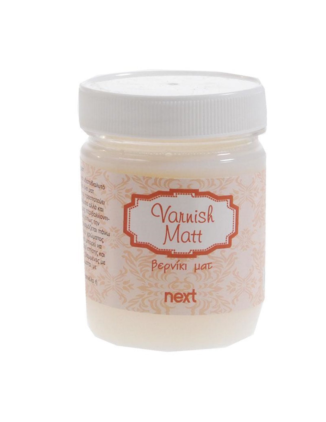 Next rainbow βερνίκι άχρωμο, ματ, υδατοδιαλυτό 200ml. Δίνει ένα ματ φινίρισμα στο αντικείμενο προστατεύοντας το από γδαρσίματα αλλά παράλληλα και από διάφορες περιβαλλοντικές συνθήκες όπως την υγρασία. Εφαρμόζεται πάνω από το εφέ του χρώματος κιμωλίας αλλα μπορεί να χρησιμοποιηθεί επίσης και σε επιφάνειες βαμμένες με ακρυλικά χρώματα, με τέμπερες κ.α. Απλώνεται με πινέλο ή με σφουγγάρι.