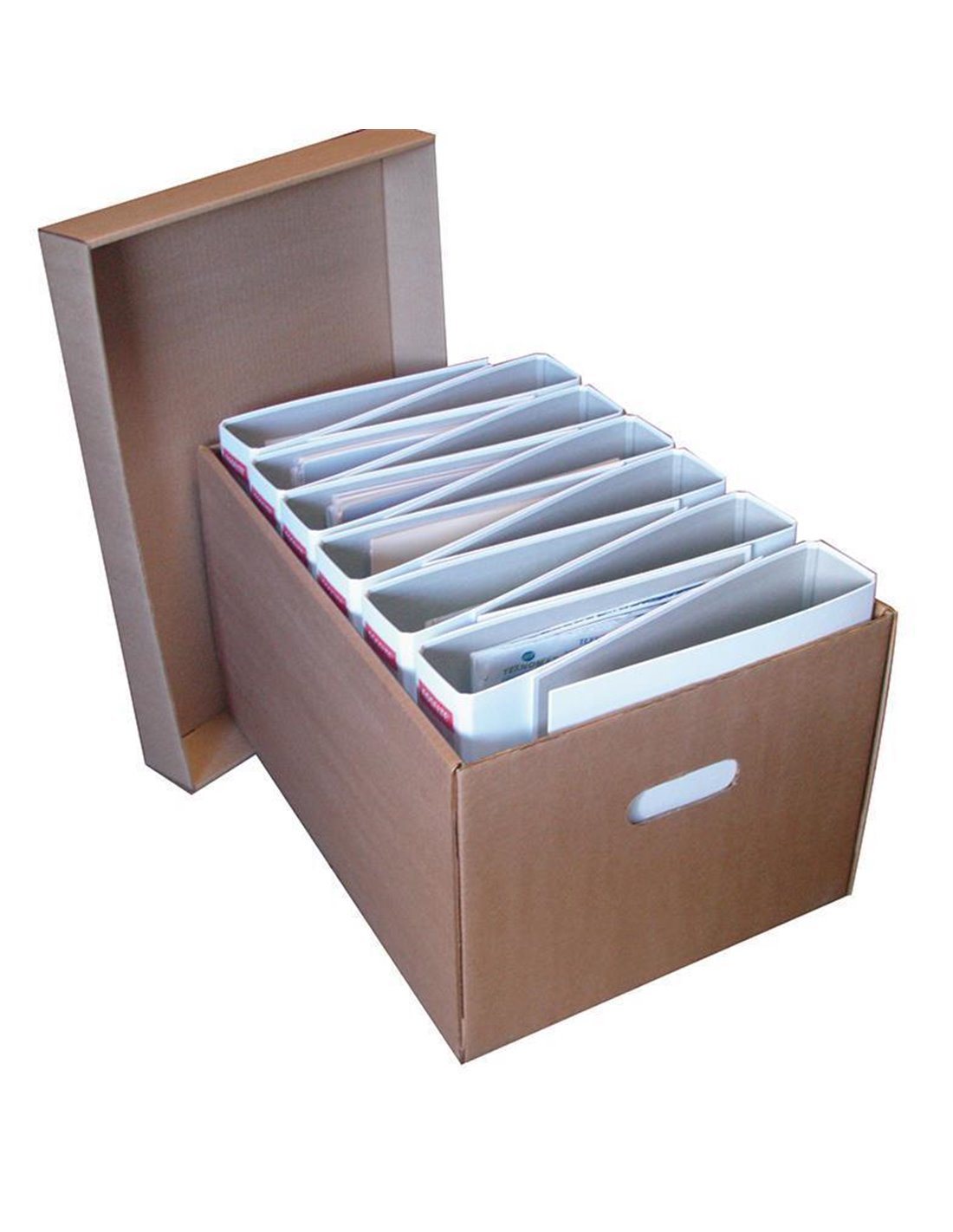 Κουτί αδρανούς αρχείου με καπάκι. Για βαριά χρήση. Σηκώνει μέχρι 50 κιλά. Χωράει 12 κλασέρ 8/32. Διαστάσεις: Υ30x53x38εκ. Χρώμα: καφέ.