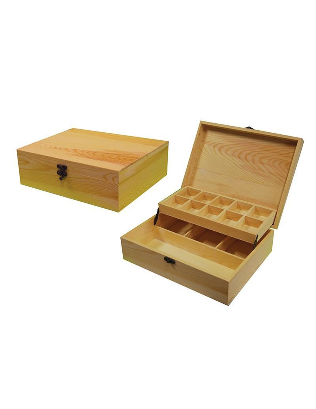 Κουτί ξύλινο με 2 επίπεδα και διάφορες θήκες.