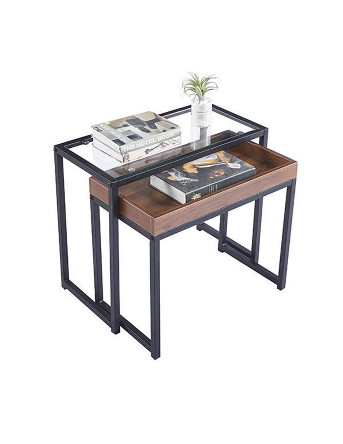 Ένα με γυάλινη επιφάνεια και ένα μικρότερο με ξύλινη από MDF πάχους . Προσφέρουν περισσότερο χώρο αποθήκευσης