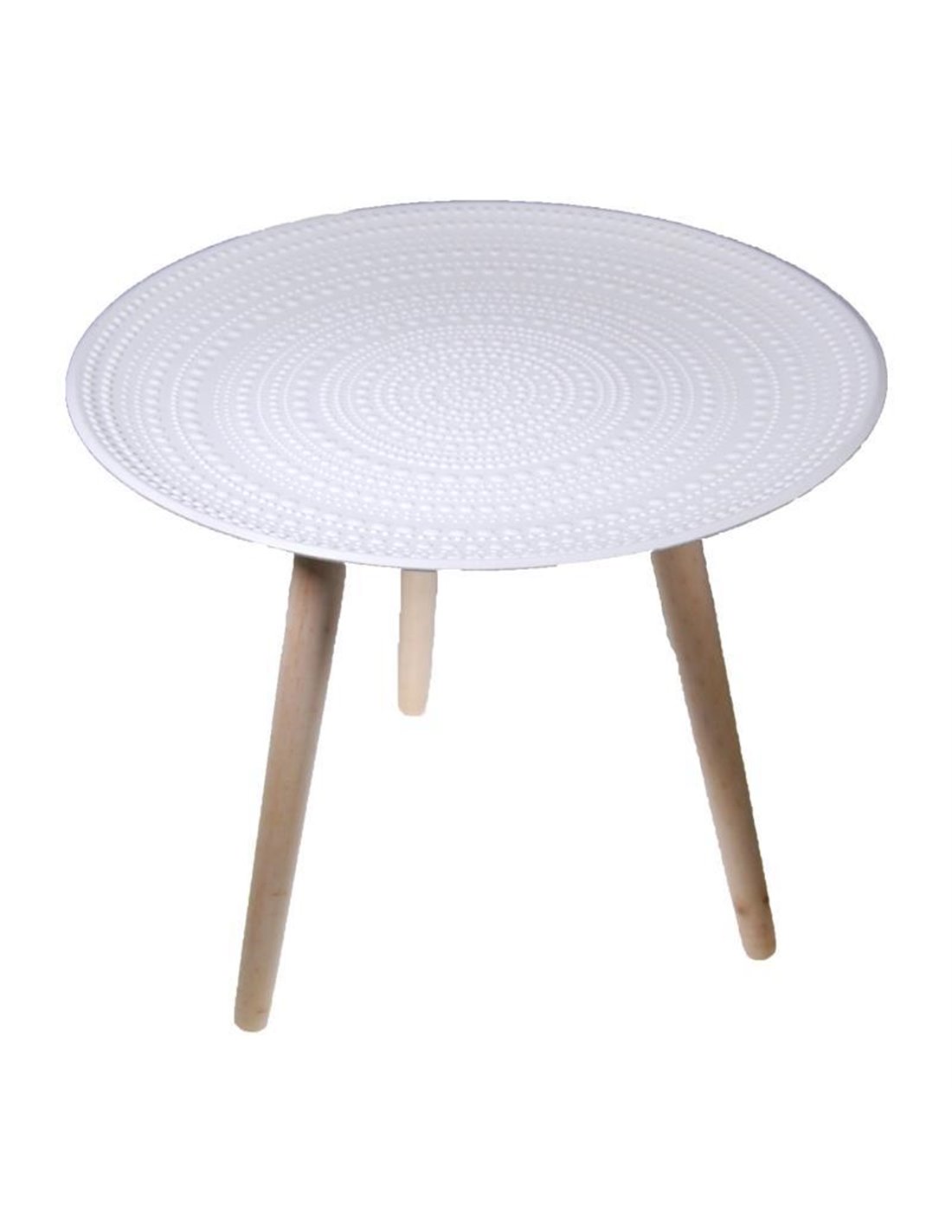 Τραπέζι ξύλινο στρόγγυλο με ανάγλυφο σχέδιο. Με 3 πόδια. Διαστάσεις: Υ42x49εκ. Χρώμα: Λευκό