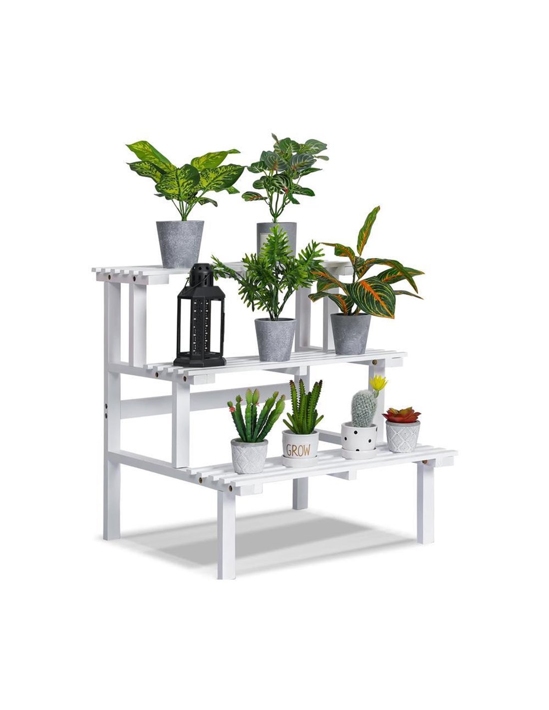 Ανθοστήλη Nextdeco ξύλινη λευκή 3 επιπέδων. Αυτή η βάση λουλουδιών 3 επιπέδων έχει σχεδιαστεί σε σχήμα σκαλοπατιών, προσφέροντας μια κομψή και λειτουργική λύση για την τοποθέτηση φυτών και λουλουδιών. Ιδανική για σαλόνια, μπαλκόνια ή κήπους. Κατασκευασμένη από υψηλής ποιότητας φυσικό bamboo, προσφέρει αντοχή, σταθερότητα - minimal αισθητική, καθιστώντας την ιδανική για εσωτερικούς - εξωτερικούς χώρους. Διαστάσεις: Υ60x56x60εκ.