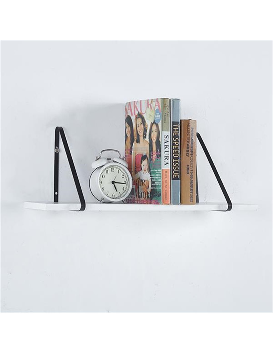 Επιτοίχιο ράφι αποτελούμενο από 2 μεταλλικές γωνίες σε μαύρο χρώμα και επιφάνεια από μελαμίνη πάχους 15mm.