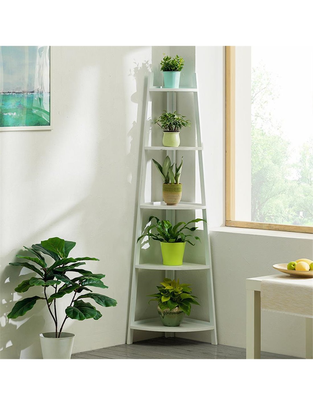 Ανθοστήλη 5 ραφιών Nextdeco μπαμπού λευκή. Ιδανική για την τοποθέτηση φυτών, διακοσμητικών ή άλλων αντικειμένων, προσφέρει άφθονο χώρο για οργάνωση και διακόσμηση του χώρου σας. Κατασκευασμένη από υψηλής ποιότητας φυσικό bamboo, προσφέρει αντοχή, σταθερότητα - minimal αισθητική, καθιστώντας την ιδανική για εσωτερικούς - εξωτερικούς χώρους. Διαστάσεις: Υ147xΜ50xΠ34 εκ. Διαστάσεις: κιβωτίου: 100x52x13εκ.