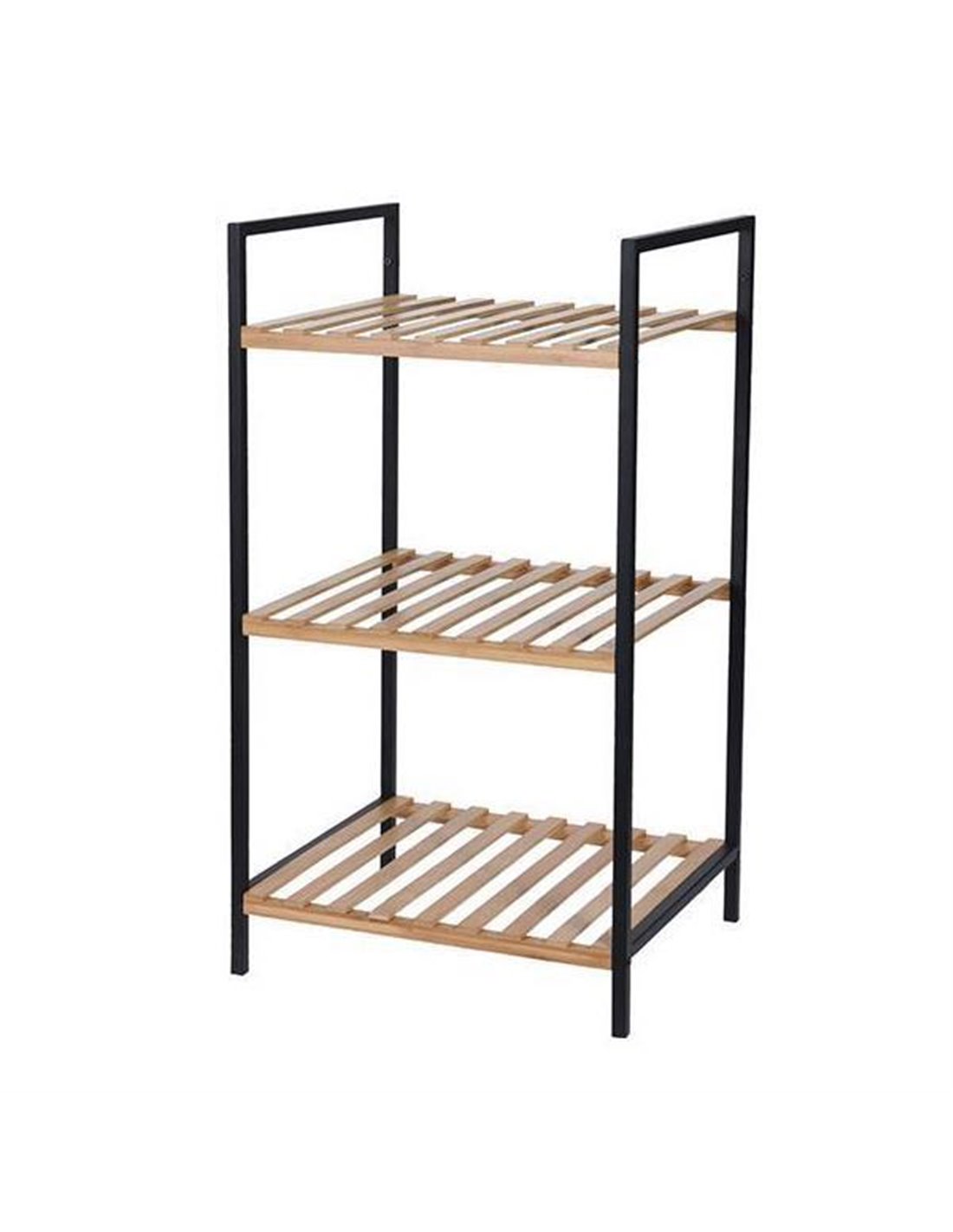 Ραφιέρα με μαύρο μεταλλικό σκελετό και 3 ράφια από μπαμπού. Διαστάσεις: Υ70x38x32,5εκ. Διαστάσεις συσκευασίας: 36Χ6Χ72εκ. Βάρος: 1.77Kg.