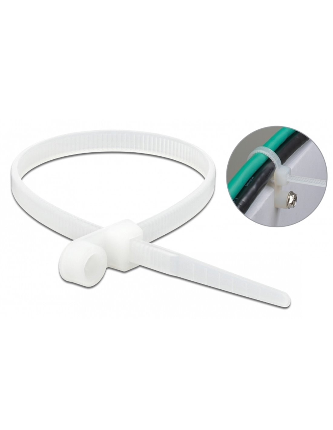 DELOCK Δεματικά καλωδίων 18944 με οπή στερέωσης, 160x4.8mm, λευκά, 10τμχ