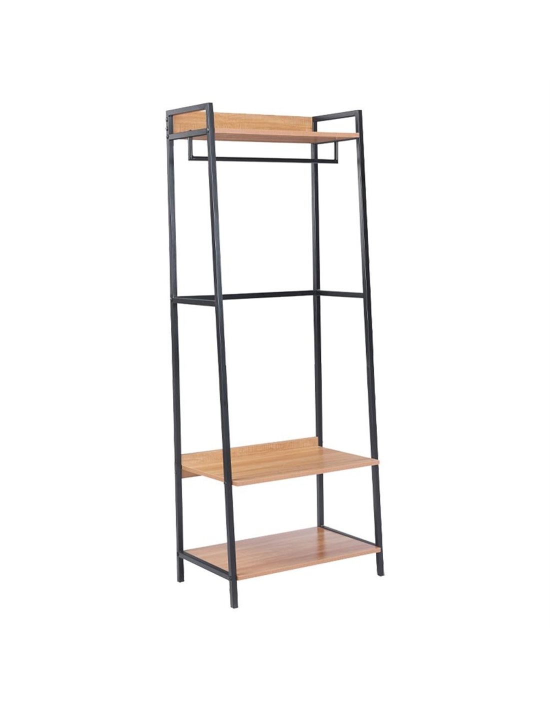 Η κρεμάστρα οργάνωσης ρούχων Nextdeco είναι η ιδανική λύση αποθήκευσης για κάθε χώρο. Ο μεταλλικός σκελετός με ηλεκτροστατική βαφή σε μαύρο ματ προσφέρει στιβαρότητα, ενώ τα ράφια MDF 15mm με επένδυση μελαμίνης αναδεικνύουν φυσική ξύλινη υφή. Ταιριάζει σε σαλόνι, κουζίνα, χωλ ή γραφείο, δίνοντας industrial χαρακτήρα στη διακόσμησή σας.