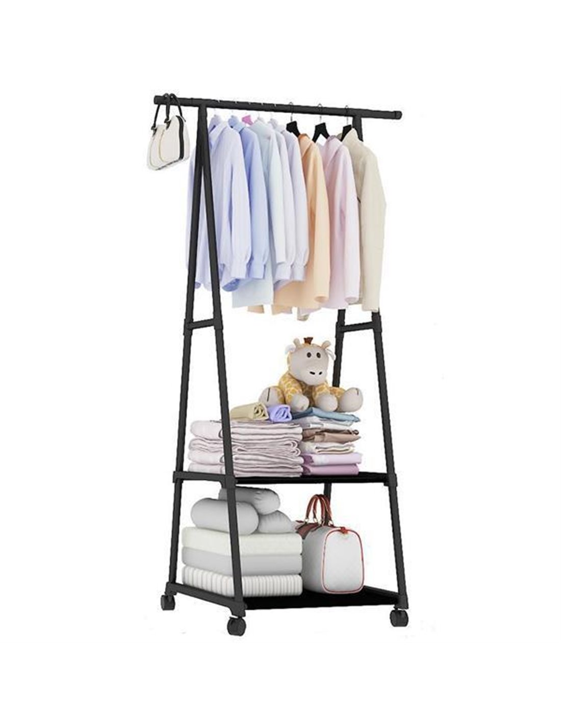 Ανοιχτή ντουλάπα οργάνωσης ρούχων 3 επιπέδων. Εύκολη στη συναρμολόγηση αλλά και πολλαπλές χρήσεις: Μπορεί να χρησιμοποιηθεί ως ράφι παπουτσιών, κρεμαστά για ρούχα, καπέλα, παπούτσια, τσάντες, ομπρέλες. Ιδανική για RBnB, ξενοδοχεία και φοιτητικά σπίτια. Διαστάσεις: Υ160x55x42εκ.