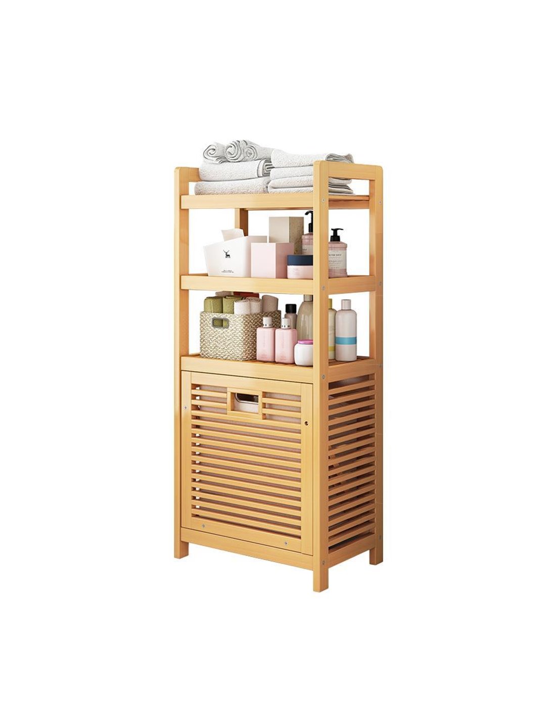 Ράφι με καλάθι απλύτων Nextdeco. Ιδανικό για την αποθήκευση των ρούχων που χρειάζονται πλύσιμο στον χώρο του μπάνιου ή της τουαλέτας. Το έπιπλο διαθέτει τρία ράφια για την τακτοποίηση μικρών αντικειμένων ή προϊόντων, καθώς και μια ντουλάπα για τα απλυτά ρούχα, προσφέροντας πρακτικότητα και οργάνωση. Με μοντέρνα ξύλινη κατασκευή, ταιριάζει εύκολα σε κάθε τύπο διακόσμησης και είναι ιδανικό για να διατηρείτε τον χώρο σας τακτοποιημένο και καθαρό. Διαστάσεις: Υ119xΜ40xΠ30 εκ.