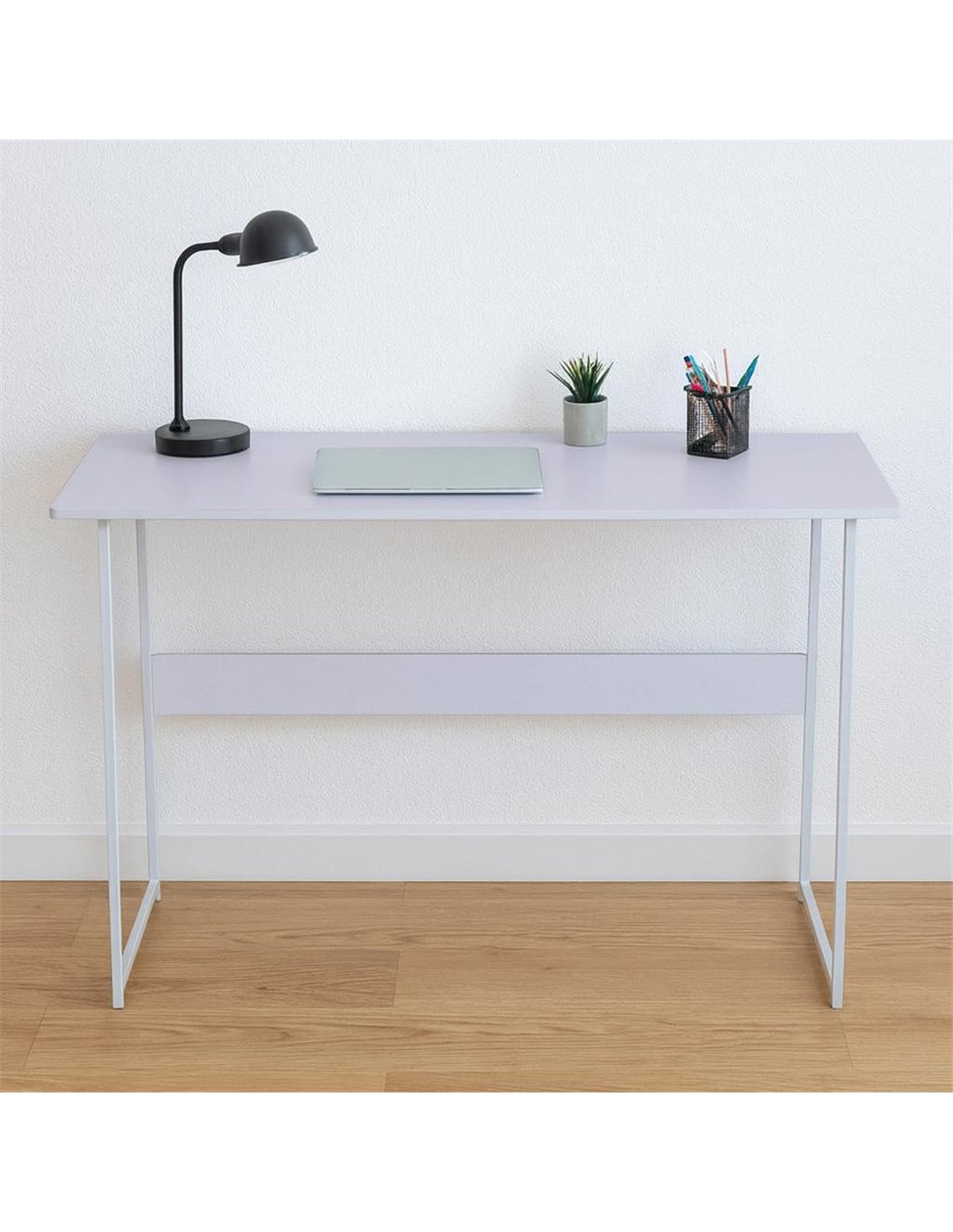 Γραφείο μίνιμαλ με λευκό σκελετό και λιλά επιφάνεια 120x45xΥ72εκ.
