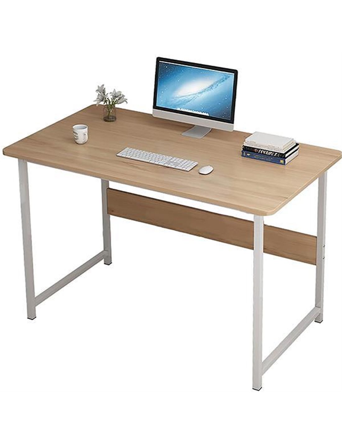 Γραφείο με λευκό μεταλλικό σκελετό και ξύλινη επιφάνεια 120x45xΥ73εκ.