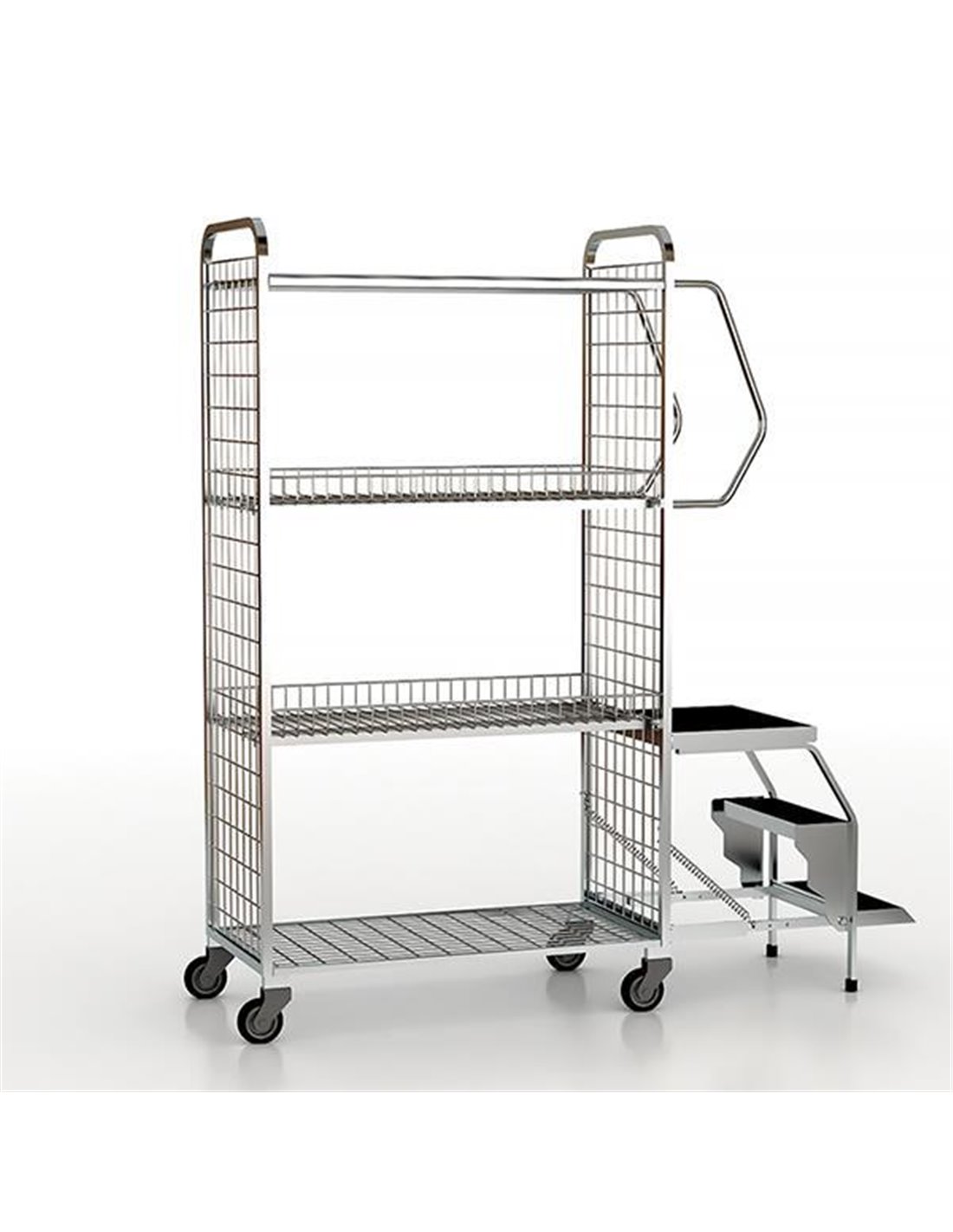 Καρότσι μεταφοράς για την αποθήκη. Κατάλληλο για αποθήκες. Μπορείτε εύκολα να γεμίζετε και τα πιο ψηλά ράφια σας. Μεταλλική κατασκευή, με μεγάλες χειρολαβές για εύκολη κίνηση και ρόδες οι οποίες περιλαμβάνουν και φρένο. Μέγιστο βάρος μεταφοράς: 300kg. Διαστάσεις: Υ163εκx90x46εκ.