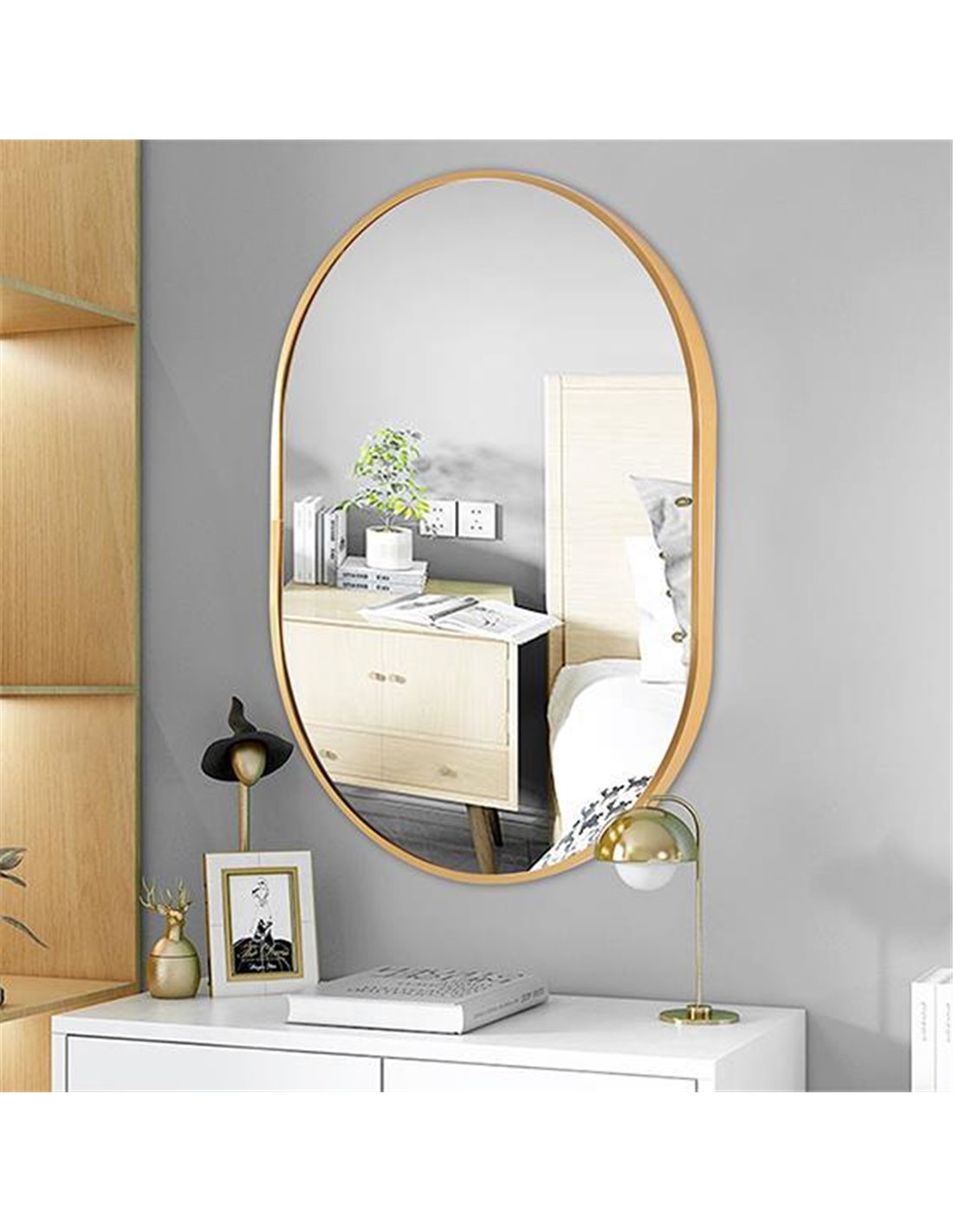 Καθρέφτης επιτοίχιος οβάλ Nextdeco χρυσό μεταλλικό πλαίσιο 50x70εκ.