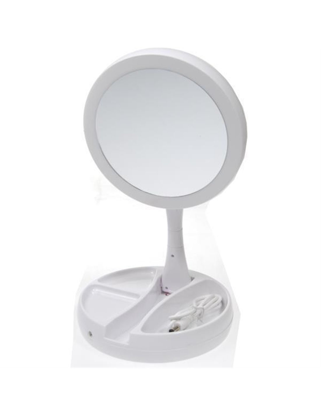 Καθρέφτης διπλός μεγεθυντικός με φώς, πλαστικός. Με διακόπτη ON/OFF. Διαθέτει βάση στήριξης για εύκολη τοποθέτηση στο μπάνιο, στην κρεβατοκάμαρα ή ακόμα και στο γραφείο. Διαθέτει μεγέθυνση x2 για να βλέπετε και την πιο μικρή λεπτομέρεια. Περιλαμβάνει καλώδιο για θύρα USB. Οι μπαταρίες δεν συμπεριλαμβάνονται.