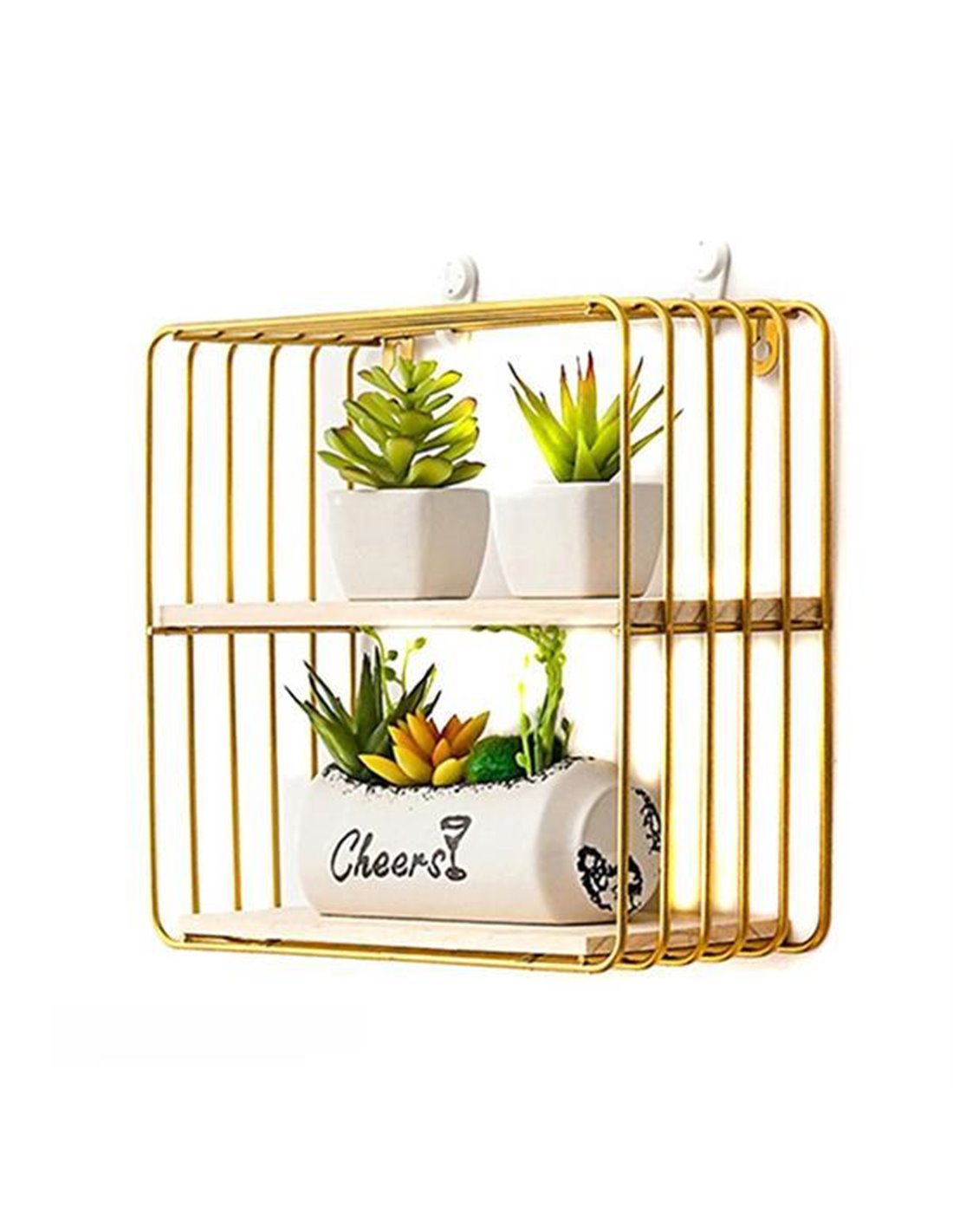 Ράφι επιτοίχιο τετράγωνο με χρυσό μεταλλικό σκελετό.