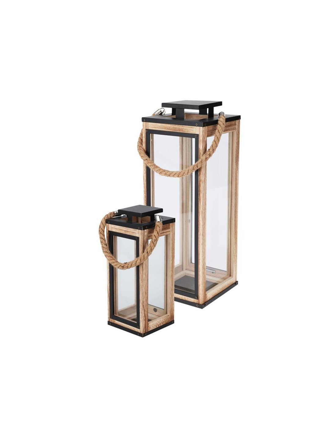 Σετ δύο ξύλινα φανάρια που συνδυάζουν φυσική ομορφιά και διαχρονικό design. Ιδανικά για χρήση με κεριά ή LED, χαρίζουν ζεστή ατμόσφαιρα σε εσωτερικούς και εξωτερικούς χώρους. Η στιβαρή ξύλινη κατασκευή τα καθιστά ανθεκτικά, ενώ οι διαφορετικές διαστάσεις τους προσφέρουν ευκολία στη διακόσμηση, είτε τοποθετηθούν μαζί είτε ξεχωριστά.