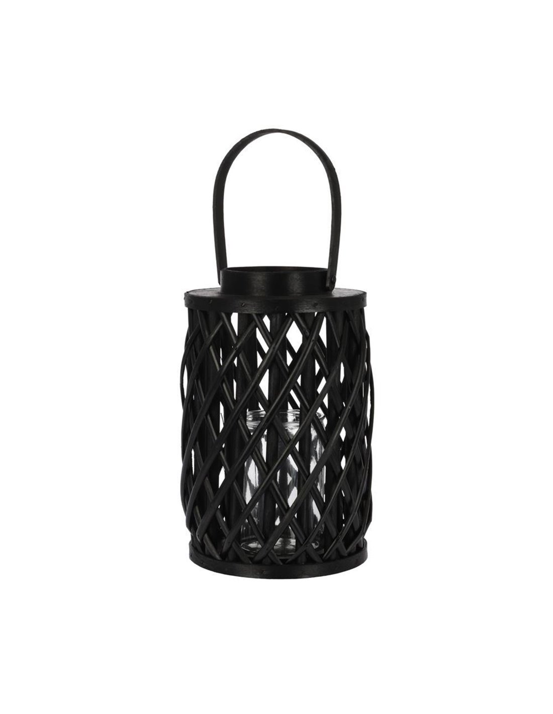 Φανάρι από πλεκτή ιτιά με χερούλι και γυάλινο κύλινδρο, σε μαύρο χρώμα, διαστάσεωνΥ32xØ19 εκ. Το φυσικό υλικό του προσθέτει ζεστασιά και ρουστίκ στυλ, ενώ το χερούλι το καθιστά εύκολο στη μεταφορά και διακόσμηση.