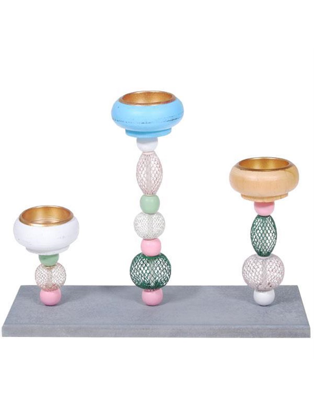 Κηροπήγιο ξύλινο. Με 3 θήκες για ρεσώ. Κατάλληλο για την διακόσμηση του σπιτιού ή του γραφείου σας. Διαστάσεις: 27,5x13x21,5εκ.