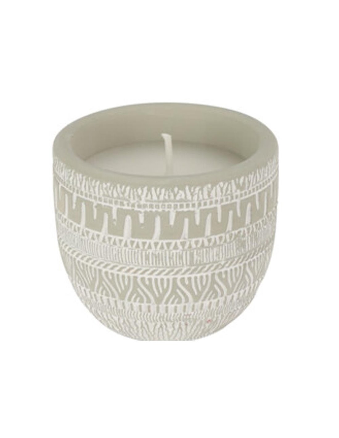 Αρωματικό κερί με άρωμα citronella (3%) από λευκό κερί, τοποθετημένο σε παλαιωμένο κεραμικό γλαστράκι με ανάγλυφο σχέδιο grey ethnic. Ιδανικό για καλοκαιρινές βραδιές σε βεράντα ή κήπο — απωθεί τα κουνούπια φυσικά και με στυλ! Χρόνος καύσης: έως 6 ώρες. Βάρος: 45 γρ. Διαστάσεις: Υ7xØ6εκ.