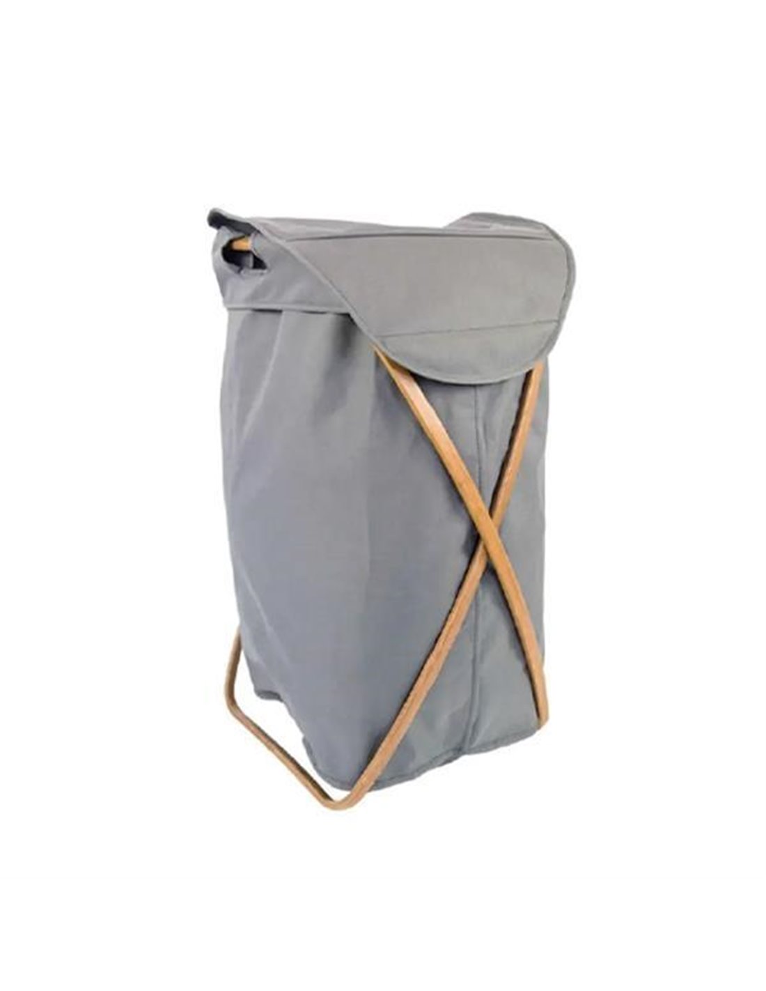 Καλάθι απλύτων Nextdeco μπαμπού σκελετό γκρι ύφασμα 40x36x70εκ.