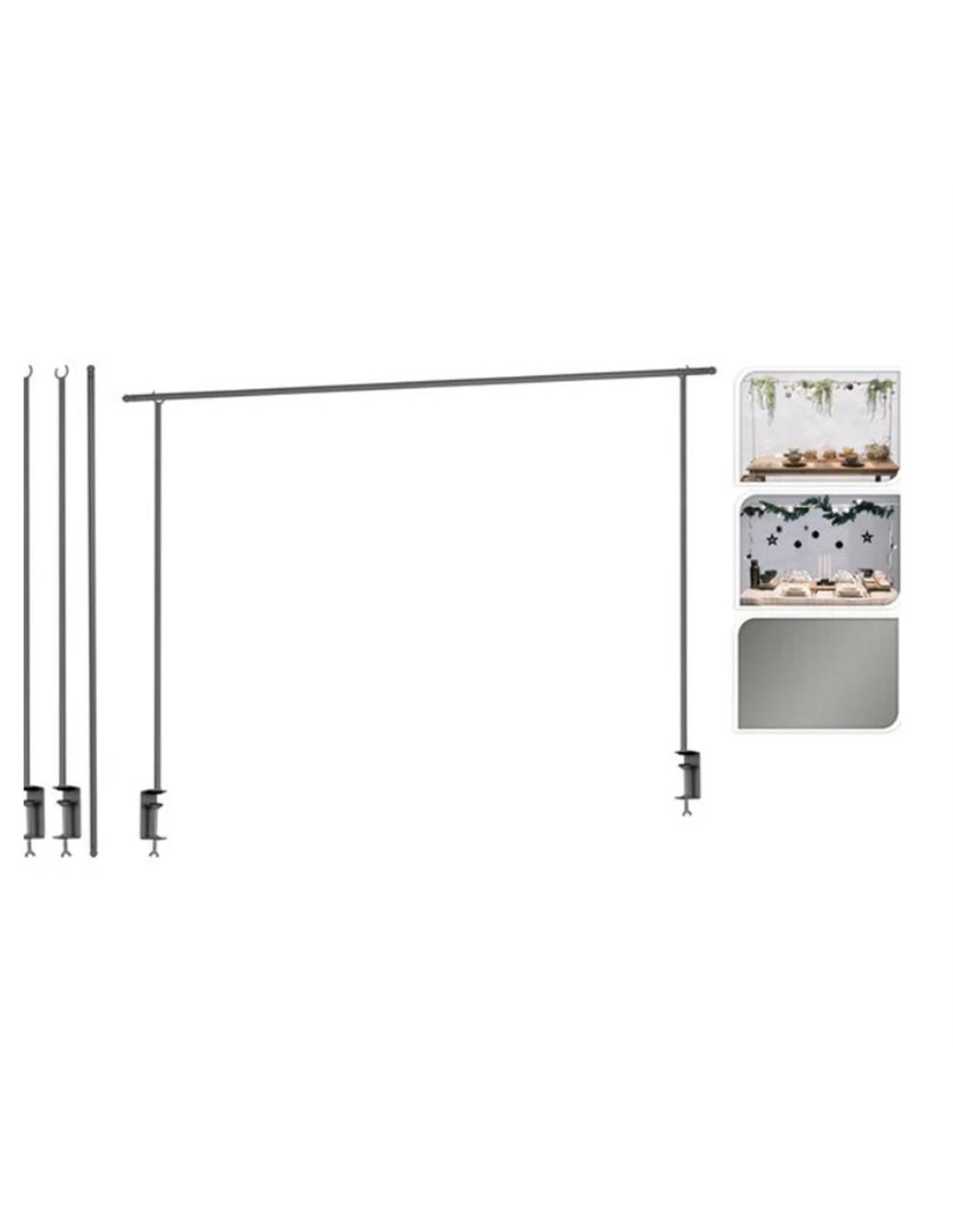 Μεταλλική κρεμάστρα-ράγα για διακόσμηση τραπεζιού ή πάγκου, επεκτεινόμενη από 1,35 έως 2,50μ. και ύψους 1μ. σε ασημί χρώμα. Χρησιμοποιήστε την για να κρεμάσετε μπαλόνια, φωτάκια, γιρλάντες, πρασινάδες ή χριστουγεννιάτικα διακοσμητικά και δημιουργήστε μια συναρπαστική αίσθηση για κάθε σας περίσταση. Διαστάσεις συσκευασίας: 135,5x8,2x6,5εκ.
