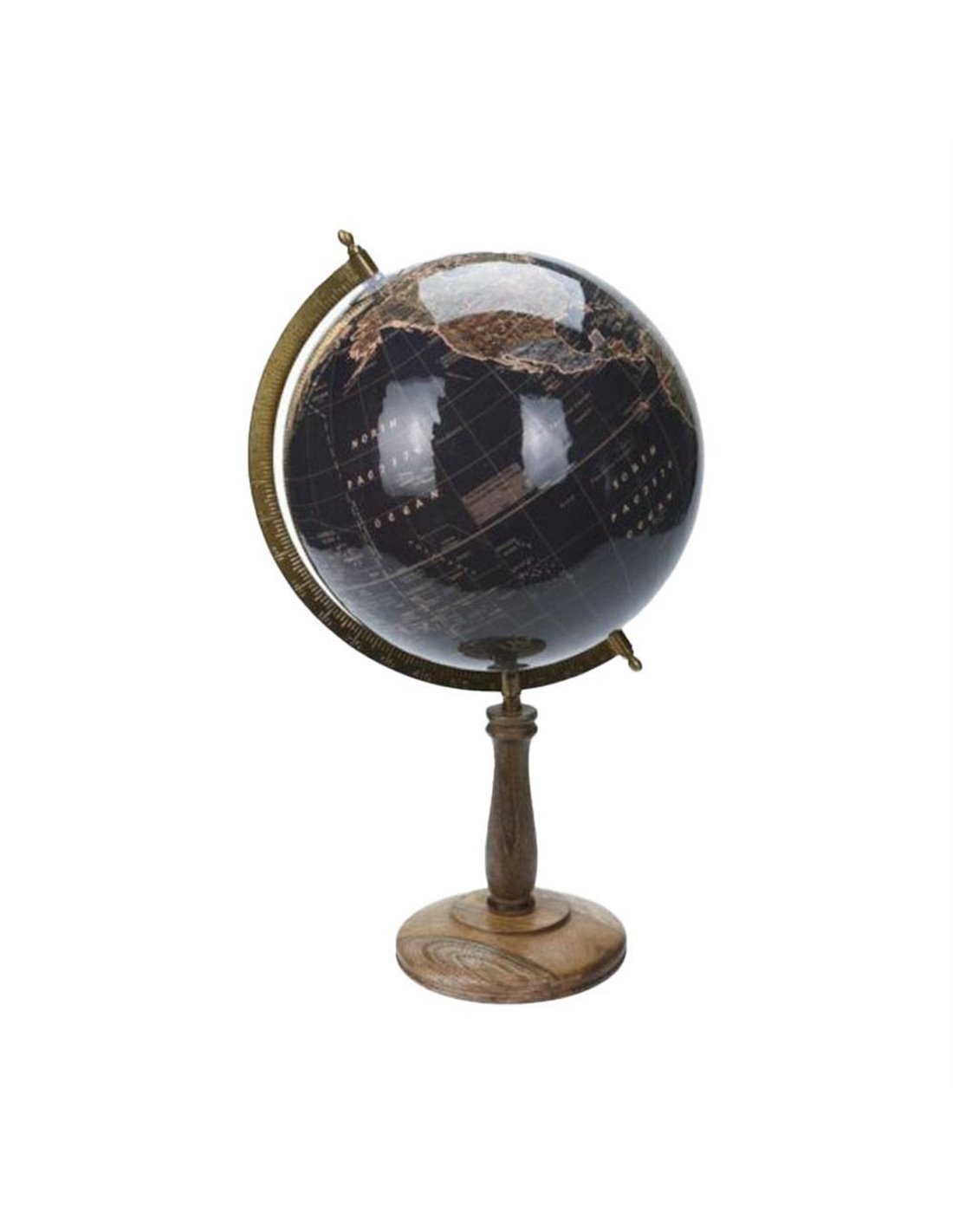 Η υδρόγειος σφαίρα με ξύλινη βάση είναι ένα κομψό διακοσμητικό αντικείμενο. Αποτελείται από: Σφαίρα διαμέτρου 5 ιντσών με επισμάλτωση για αντοχή. Βάση από ξύλο μάνγκο (Magnifera Indica) με φυσικό φινίρισμα, που προσφέρει μια ζεστή, φυσική εμφάνιση. Καλιμπραρισμένο τόξο από σίδερο με φινίρισμα σε μπρονζέ αντικέ στιλ, προσθέτοντας έναν κλασικό τόνο στη συνολική εμφάνιση. Αυτή η υδρόγειος σφαίρα είναι ιδανική για να διακοσμήσει γραφεία, βιβλιοθήκες ή σαλόνια, προσδίδοντας μια αίσθηση εξερεύνησης και ιστορικής φινέτσας.