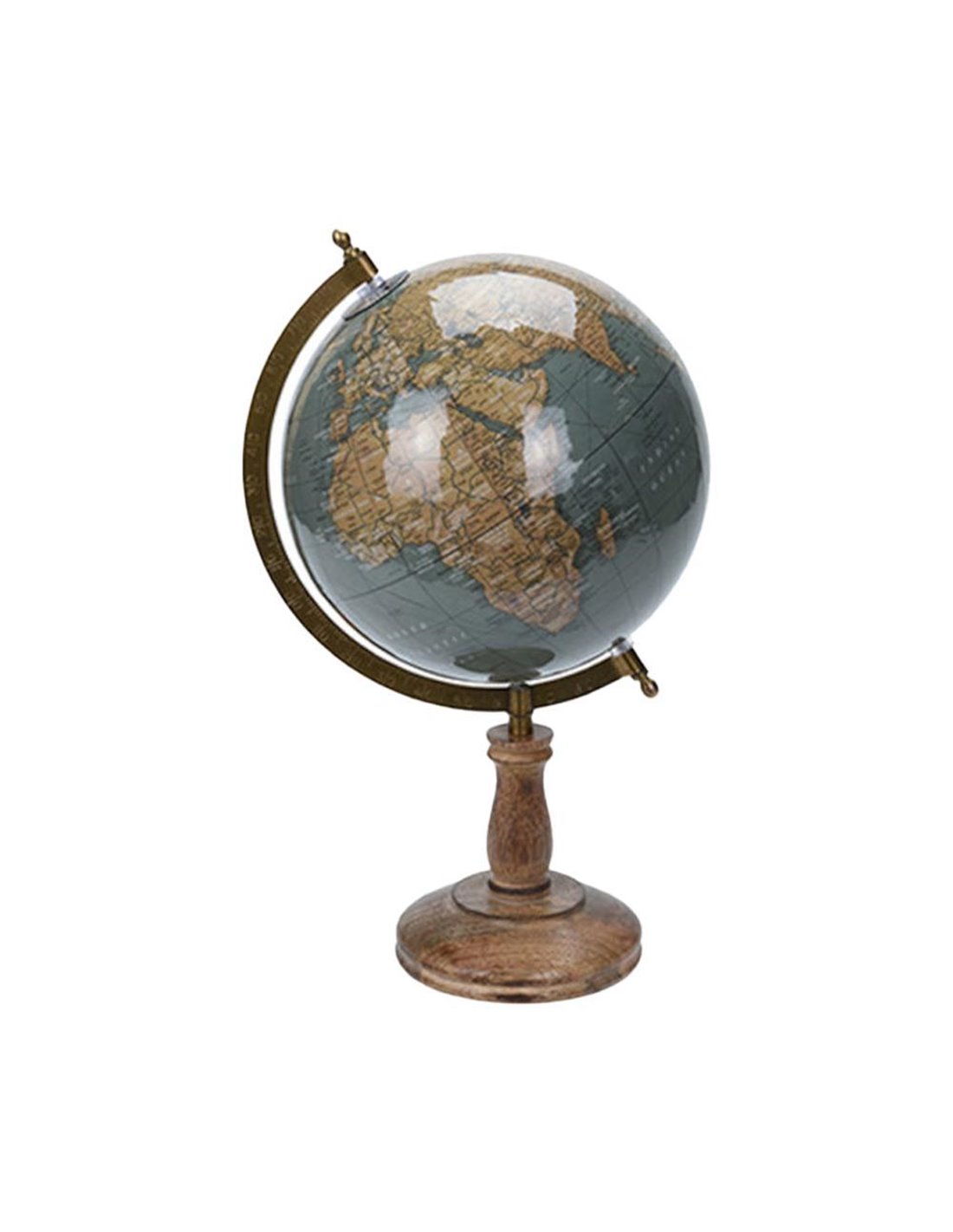 Η υδρόγειος σφαίρα με ξύλινη βάση είναι ένα κομψό διακοσμητικό αντικείμενο. Αποτελείται από: Σφαίρα διαμέτρου 5 ιντσών με επισμάλτωση για αντοχή. Βάση από ξύλο μάνγκο (Magnifera Indica) με φυσικό φινίρισμα, που προσφέρει μια ζεστή, φυσική εμφάνιση. Καλιμπραρισμένο τόξο από σίδερο με φινίρισμα σε μπρονζέ αντικέ στιλ, προσθέτοντας έναν κλασικό τόνο στη συνολική εμφάνιση. Αυτή η υδρόγειος σφαίρα είναι ιδανική για να διακοσμήσει γραφεία, βιβλιοθήκες ή σαλόνια, προσδίδοντας μια αίσθηση εξερεύνησης και ιστορικής φινέτσας.