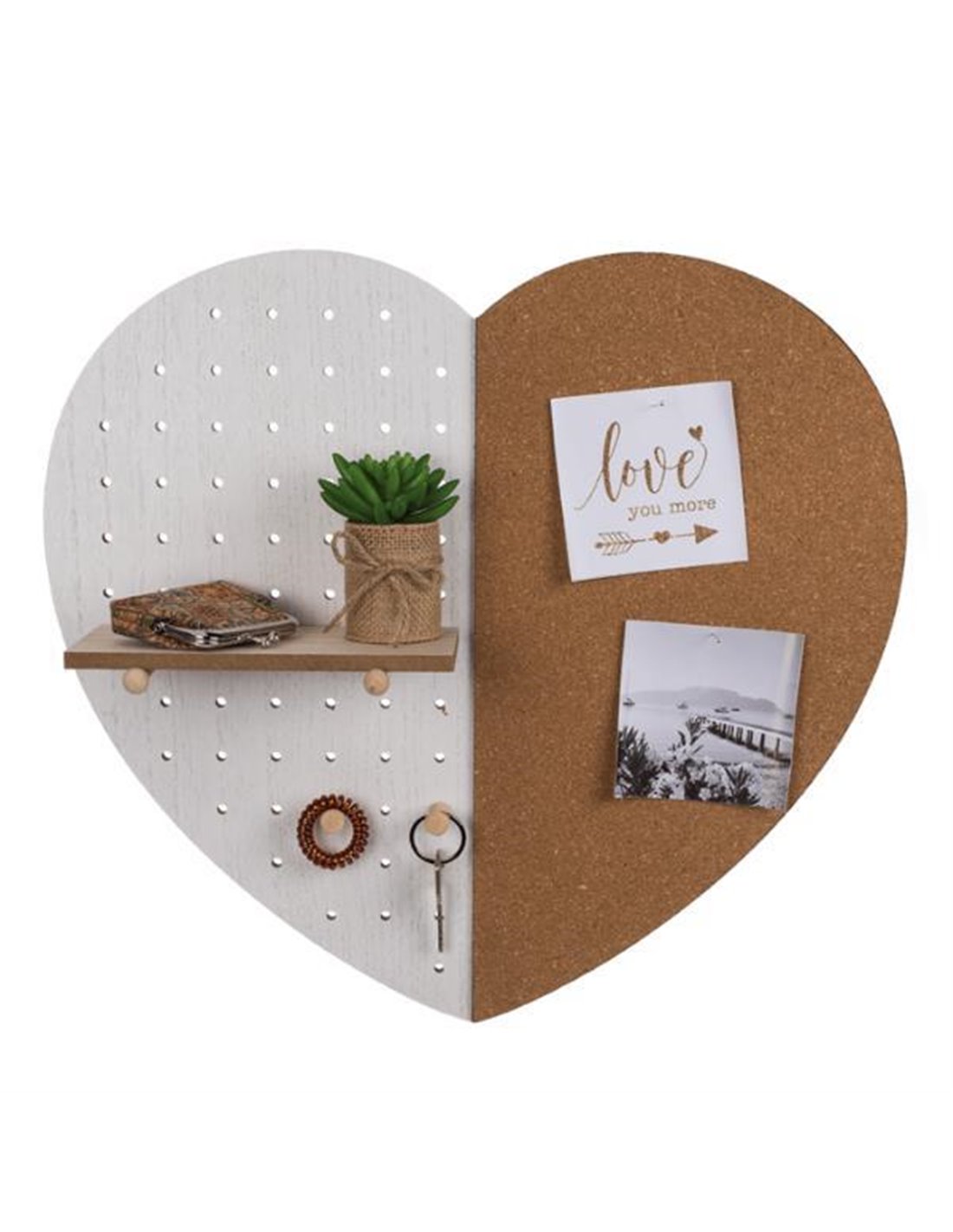 Πίνακας σημειώσεων φελλού σε σχήμα καρδιάς και 1 ράφι.