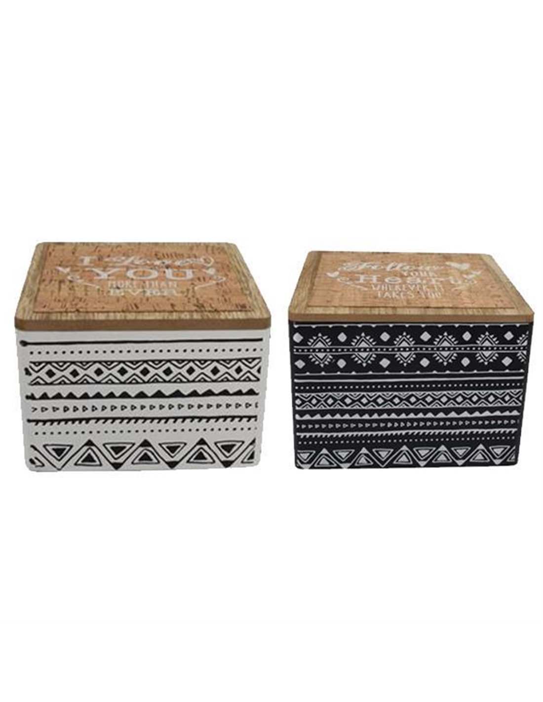Κουτί διακοσμητικό "ethnic". Σετ 2 τεμάχια κοκτέηλ. Διαστάσεις: Υ9x13x13εκ.