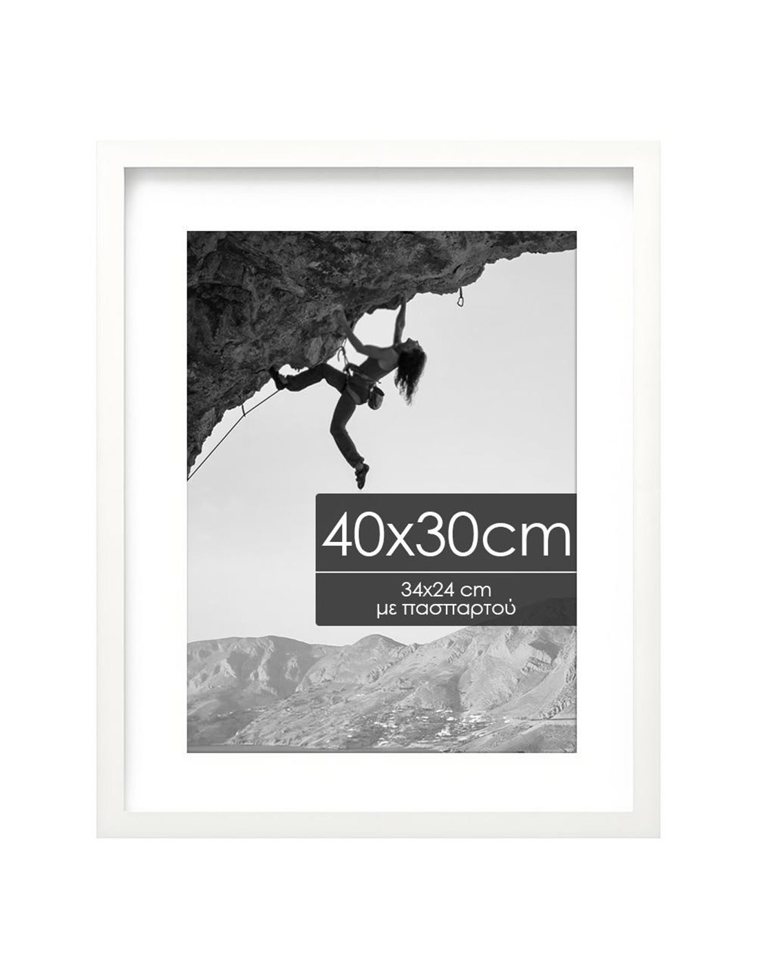 Κορνίζα τοίχου ξύλινη λευκή με ακρυλικό τζάμι Υ40x30εκ.
